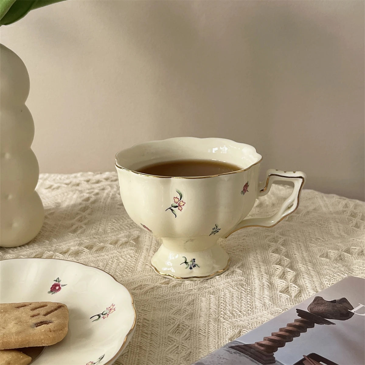 Yeknu 1Set Floral Ceramic Cup and Saucer Tea Set Accessible Luxury Coffee Cup and Saucer Afternoon Tea Cup, Suitable for Home Decoration, Party Party, Breakfast Milk Bread, Afternoon Tea Coffee Cake, Gift Giving