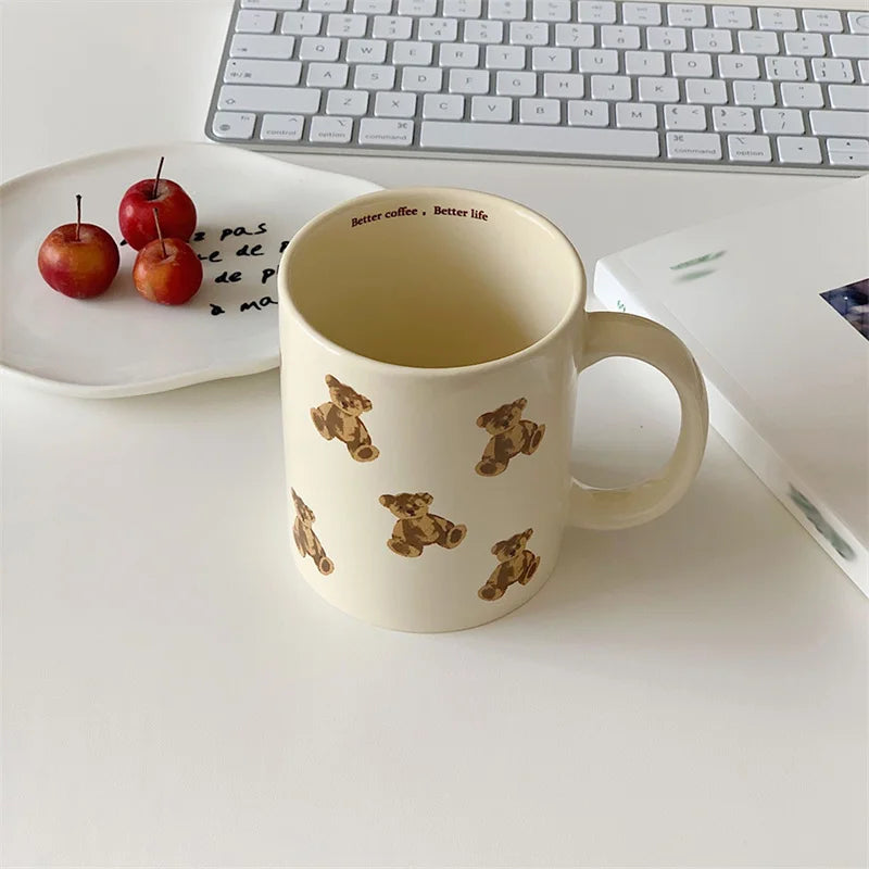 Yeknu Ins style teddy bear water cup, female design, niche retro mug