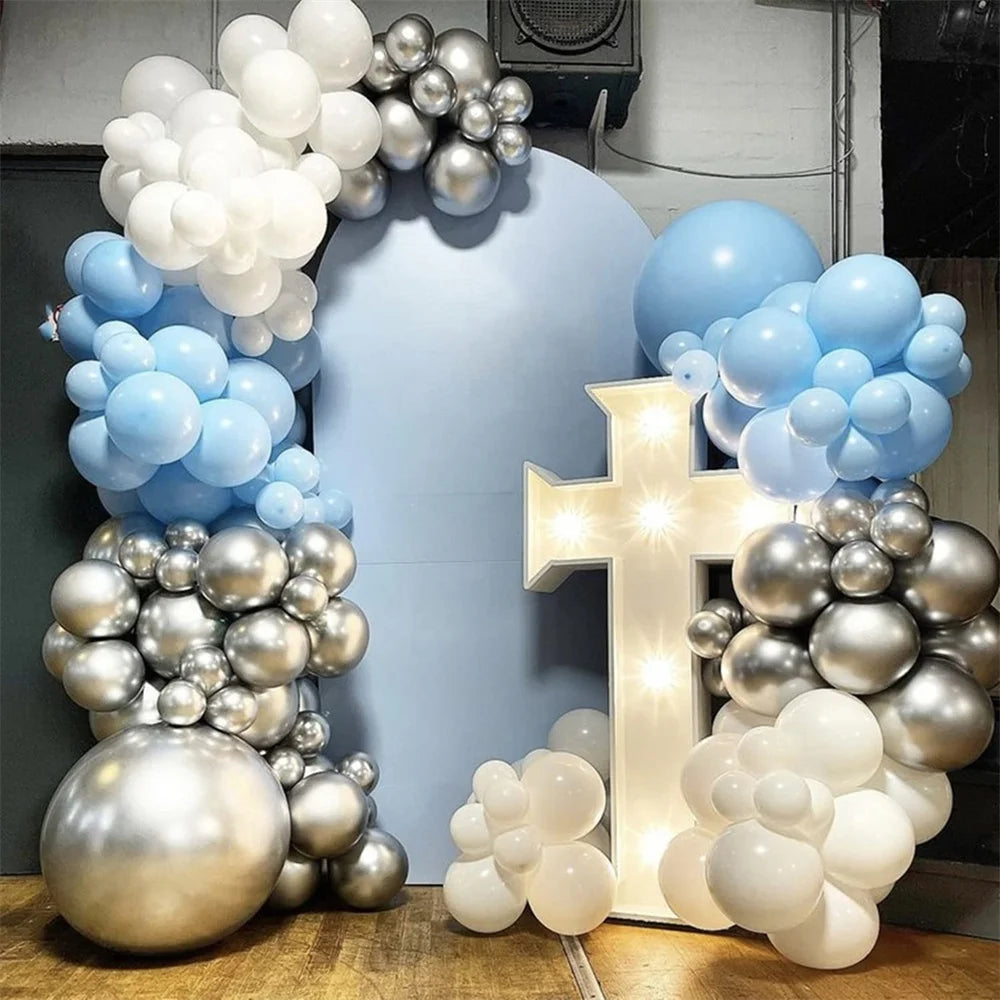 Yeknu 132Pcs Baby Blue Balloon Arch Garland Kit Milky White Metallic Silver Ballon for Bridal Shower Wedding Princess Party Decoration
