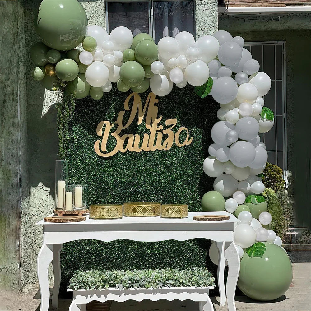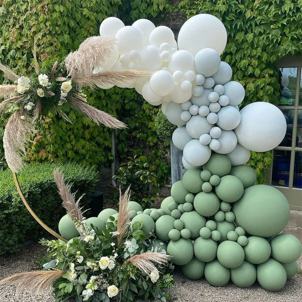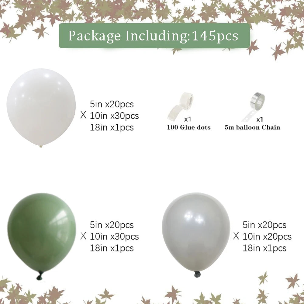 Yeknu 145Pcs Retro Theme Balloons Garland Arch Kit Retro Green Gray White Latex Balloon for Bridal Shower Birthday Party Wedding Decor