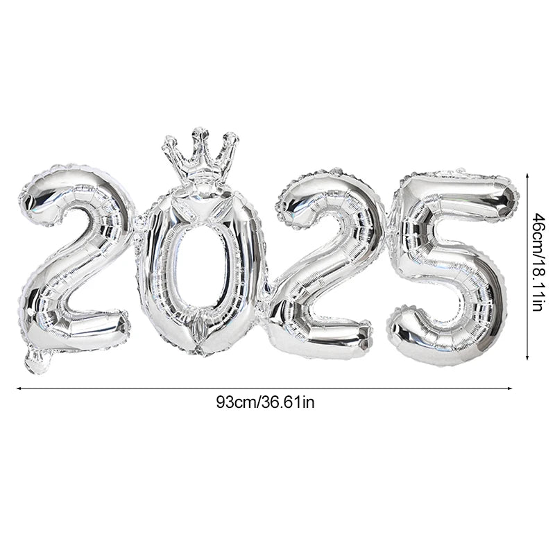 Yeknu Crown Number Foil Balloons Happy New Year Eve Party Decoration Photo Booth Props Supplies Christmas Home Decor Navidad 2024 2025