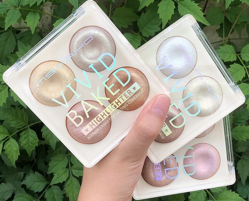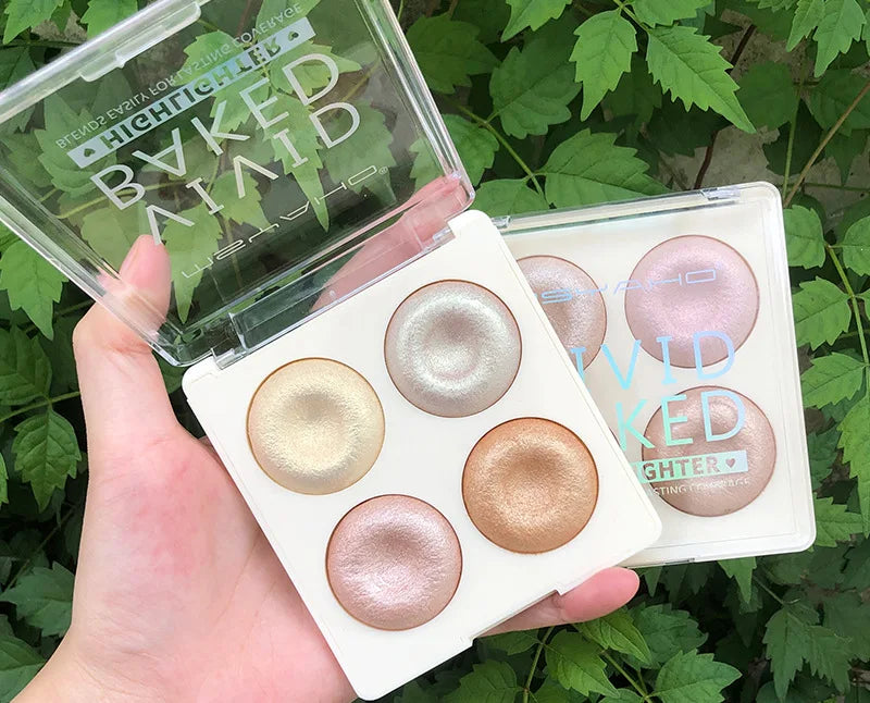 Yeknu 4-color Highlighter Makeup Palette Glitter Eyeshadow Palette Gold Bronze Highlighter Face Makeup Shimmer Illuminate Cosmetics