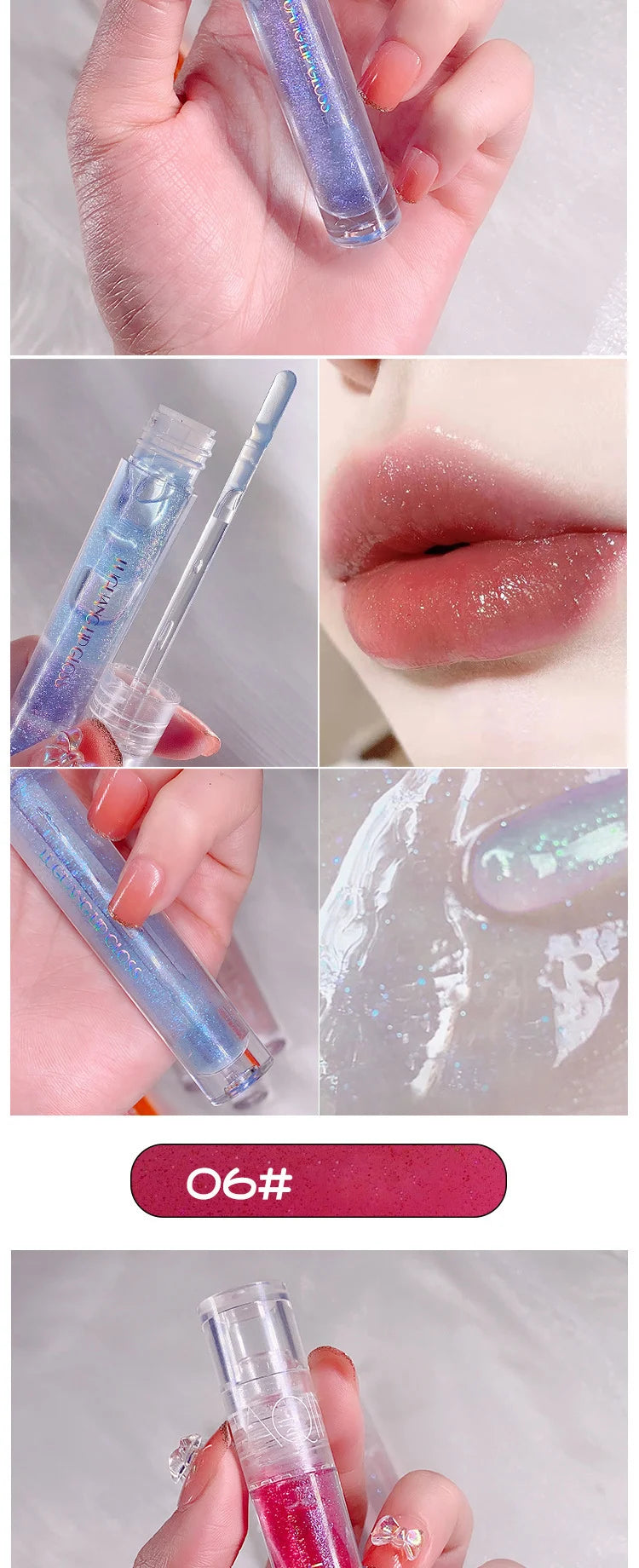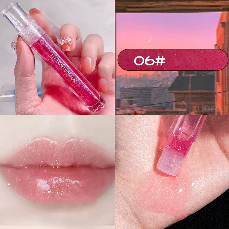 Yeknu  Galaxy Mirror Lip Gloss Glitter Lipgloss Transparent Lip Oil Long Lasting Moisturizing Lipstick Lipgloss Lips Makeup Cosmetics