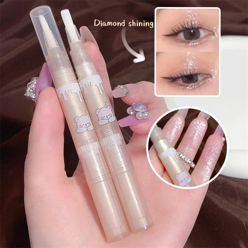 Yeknu Waterproof Shiny Diamond Highlight Pen Eye Makeup Highlighter Long Lasting Pearl White Brighten Silkworm Shadow Liquid Highlight