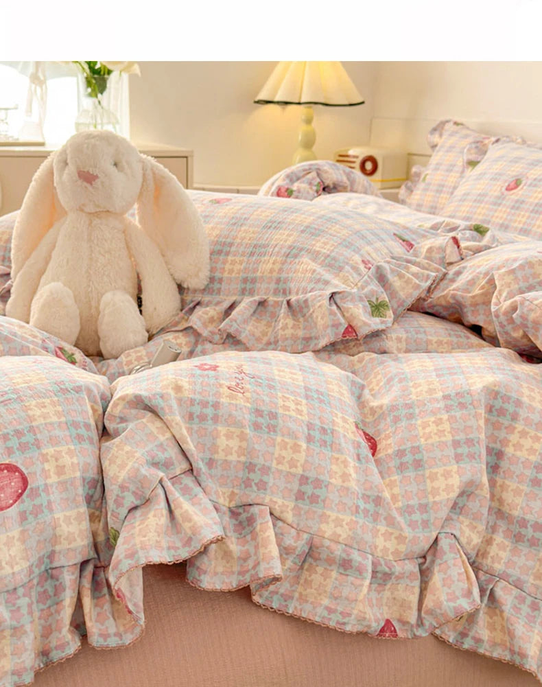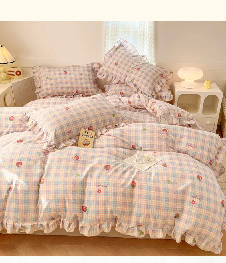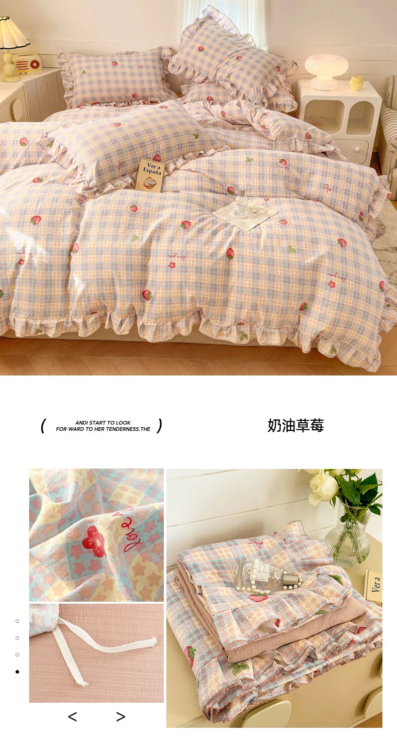 Yeknu 2025 Princess Style Bedding Sets Ruffle Lace Bow Quilt Cover Romantic Bedclothes Decor Woman Girls Bedroom Duvet Cover 4pcs