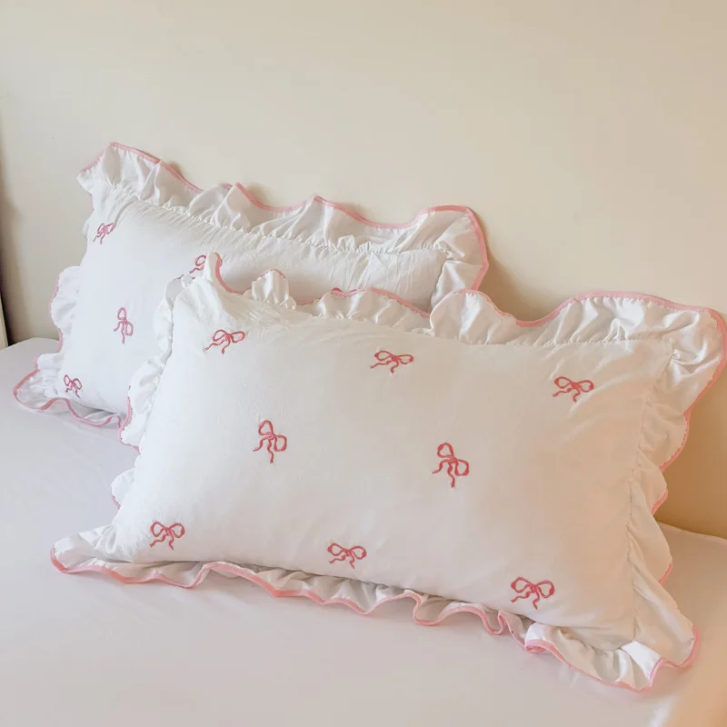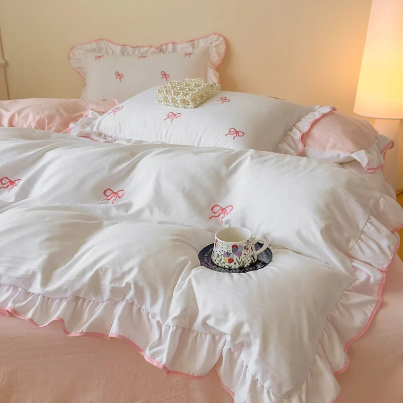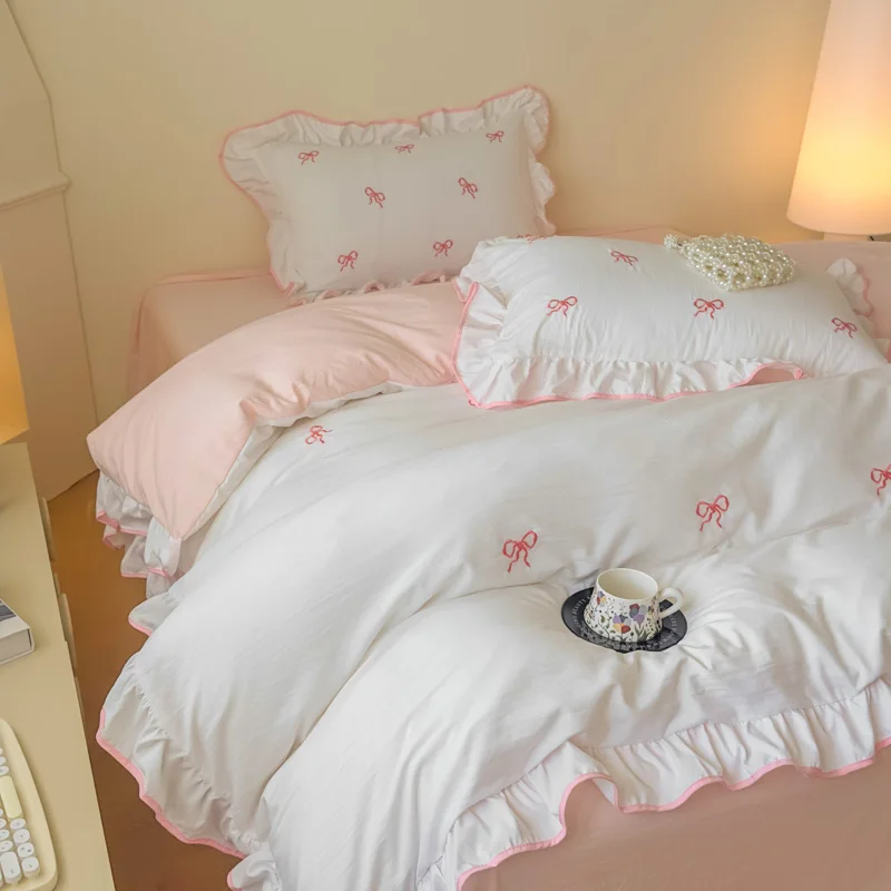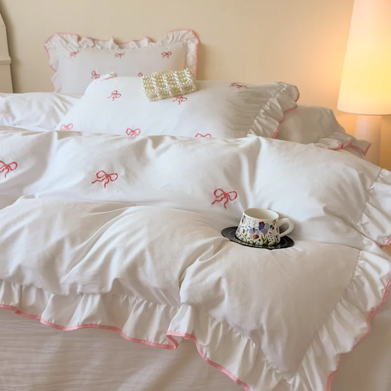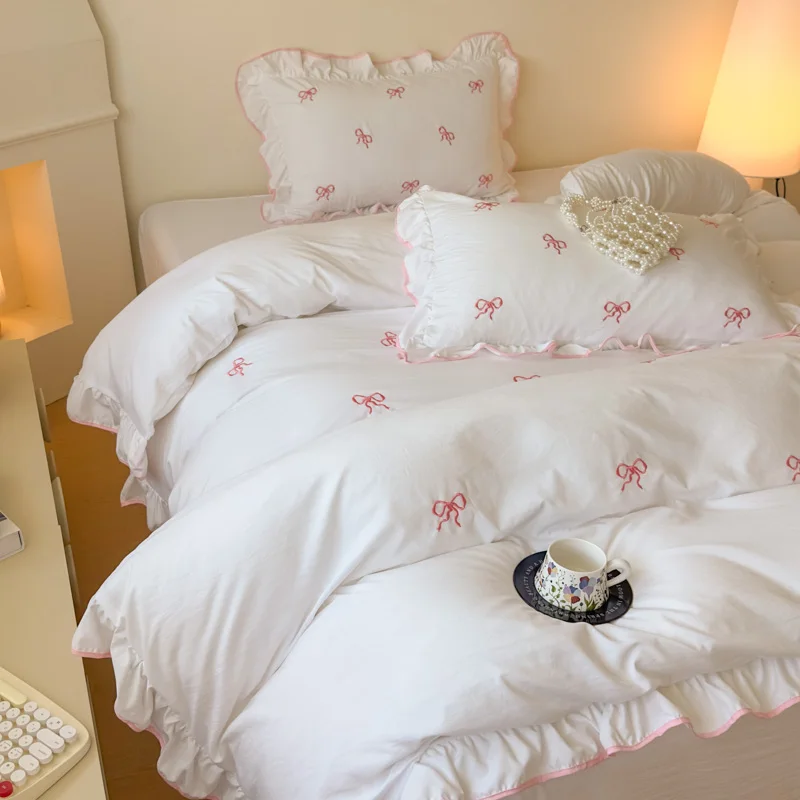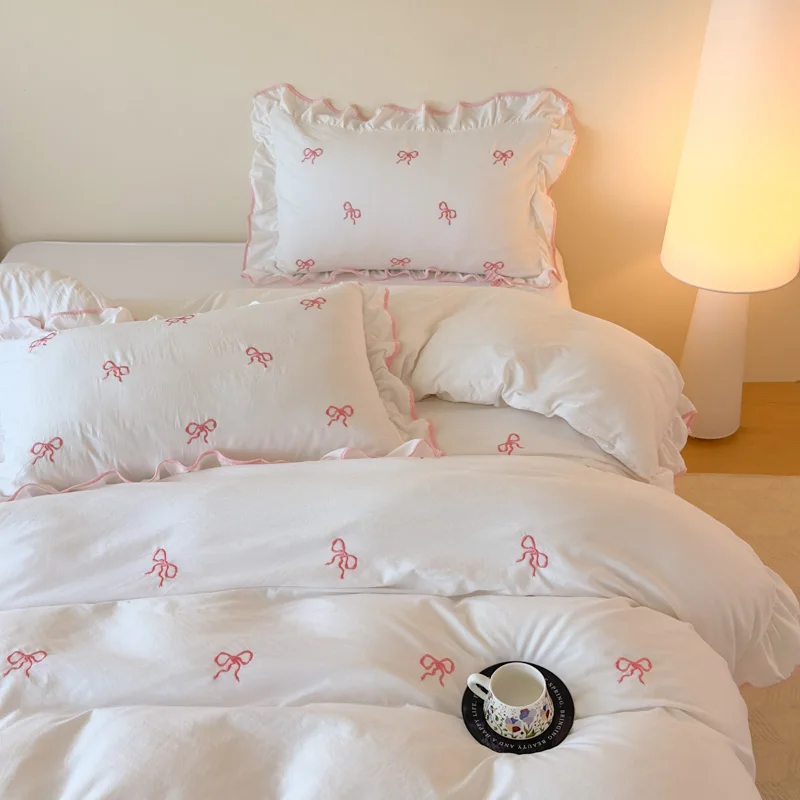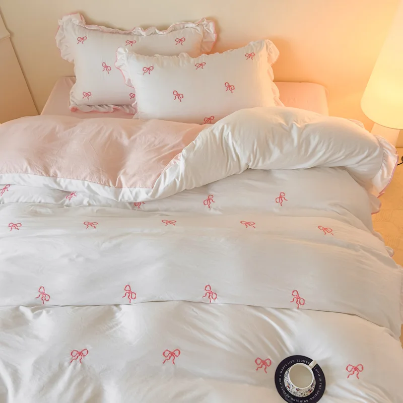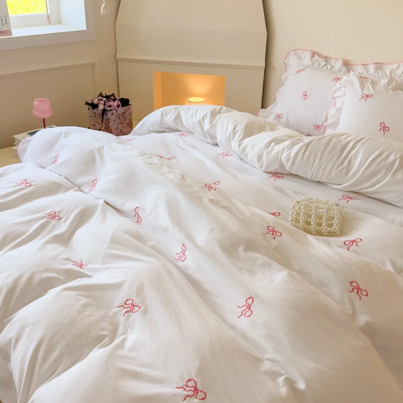 Yeknu 3 Piece Sheet Set bowknot embroidery Quilt cover Set comfortable embroidery Bedding Set Bedspread for All Season