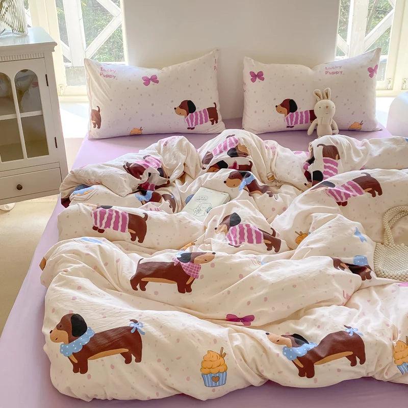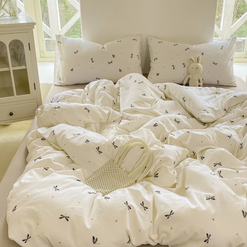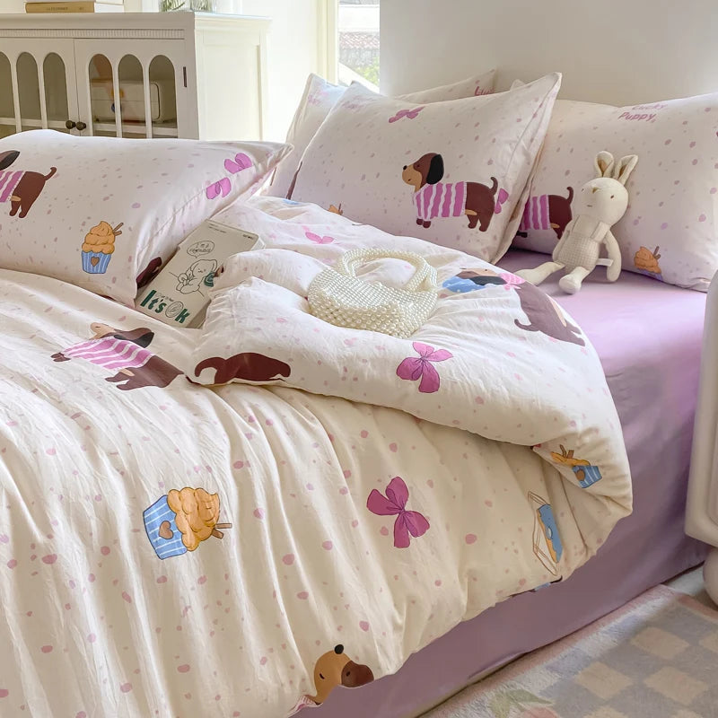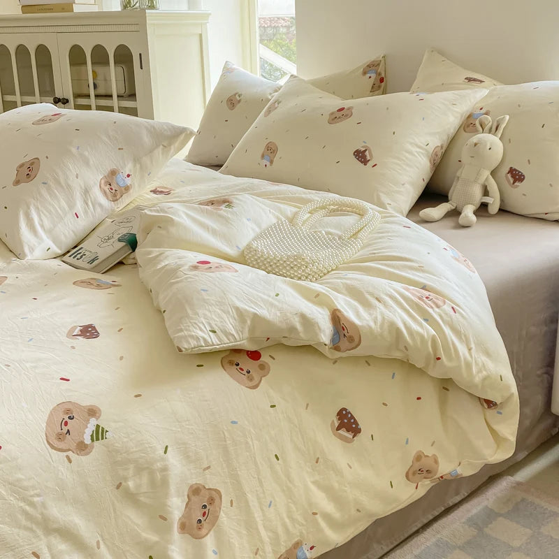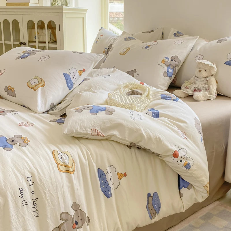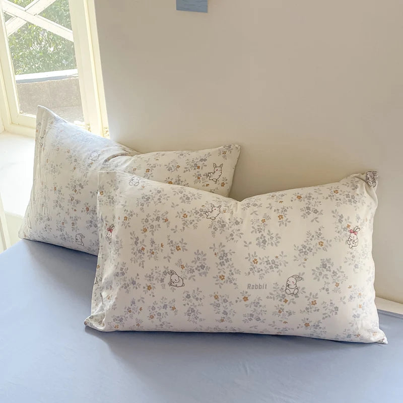 Yeknu Cute Cartoon Rabbit Bedding Set Simple Duvet Cover Bed Linen Bed Sheets Set Pillowcase Single Twin Double Queen Size Home Decor