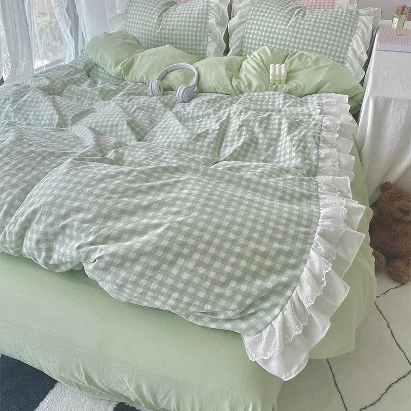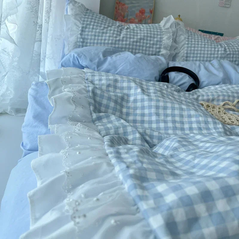 Yeknu Korean Princess Style Lattice Double Layer Lace Bedding