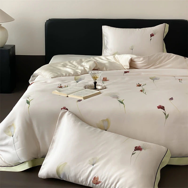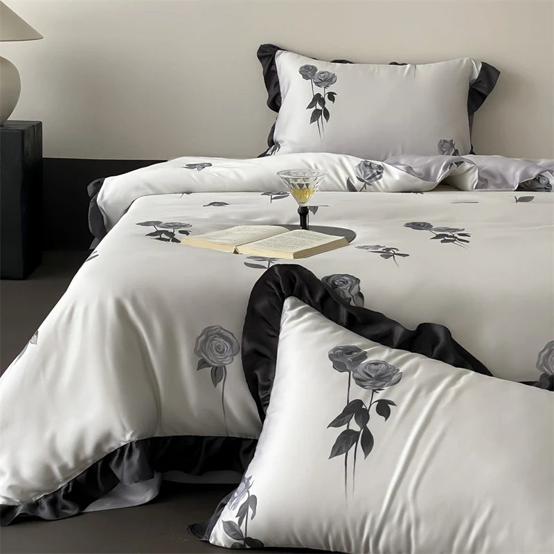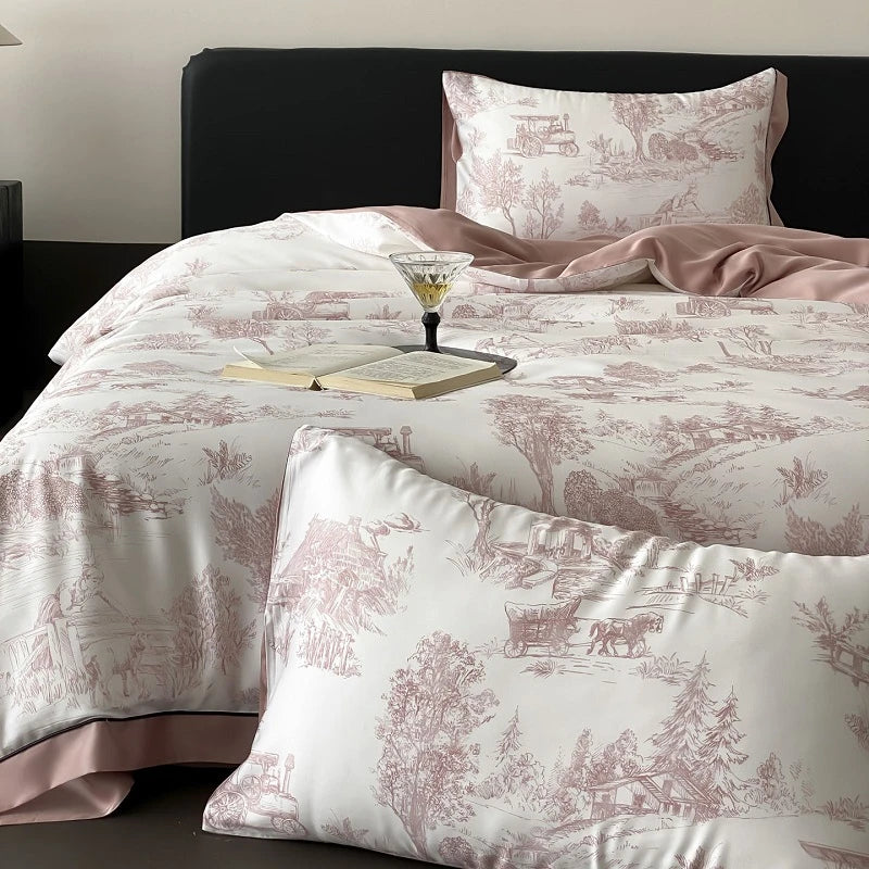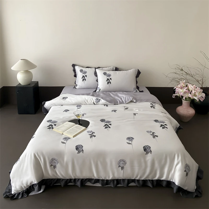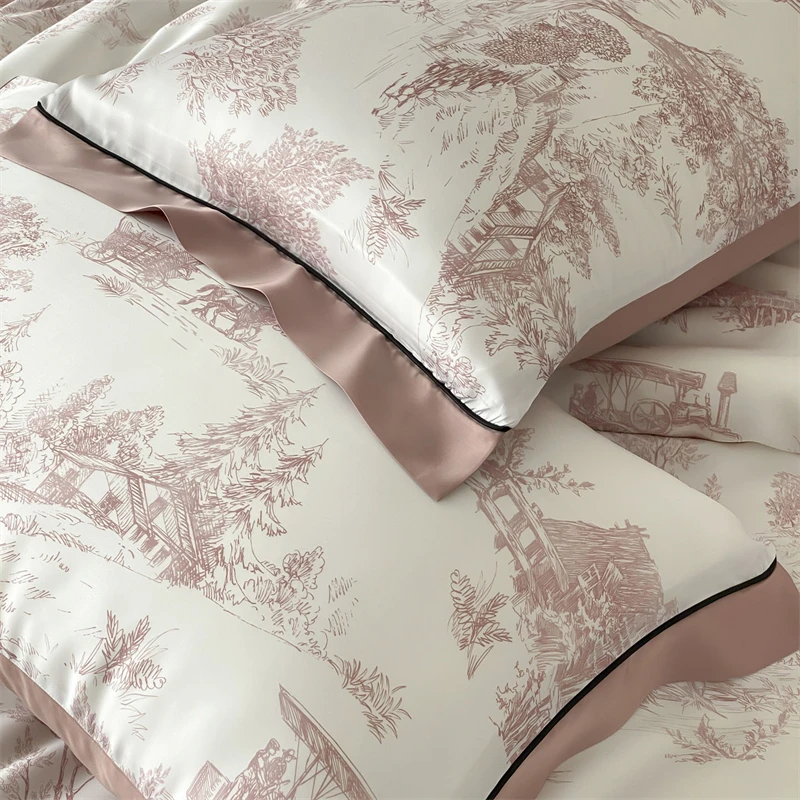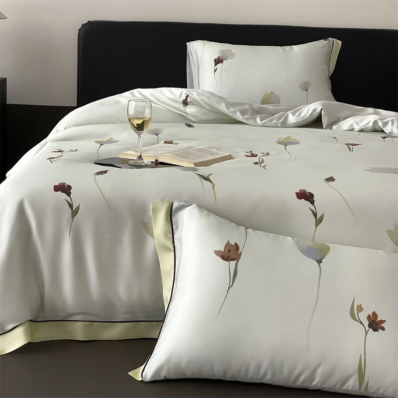 Yeknu Luxury Organic Bamboo Soft Silky Printing Bedding Set Single Double Queen King Size Duvet Cover Flat/Fitted Bed Sheet Pillowcase