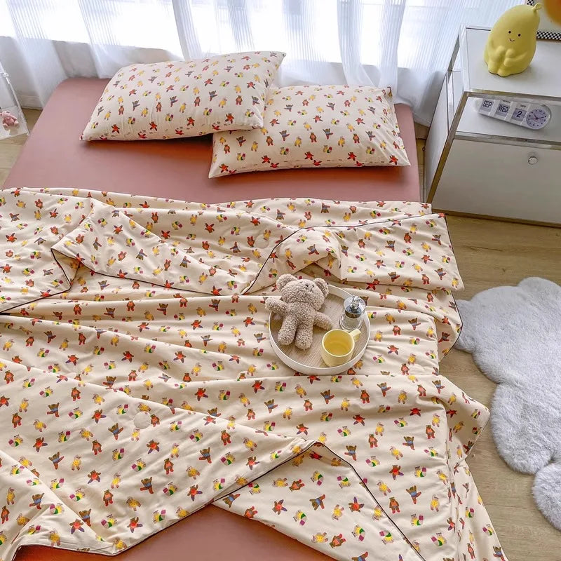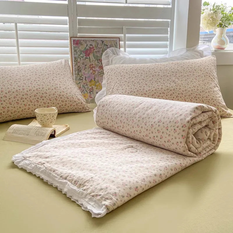 Yeknu new cotton small floral summer quilt pure cotton summer children's air conditioner quilt student dormitory machine washable