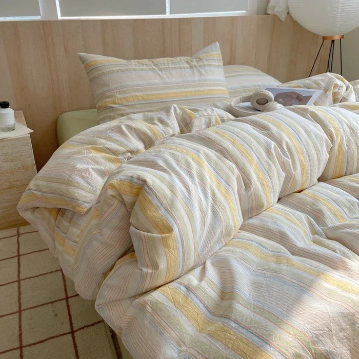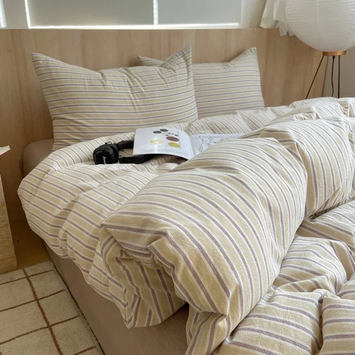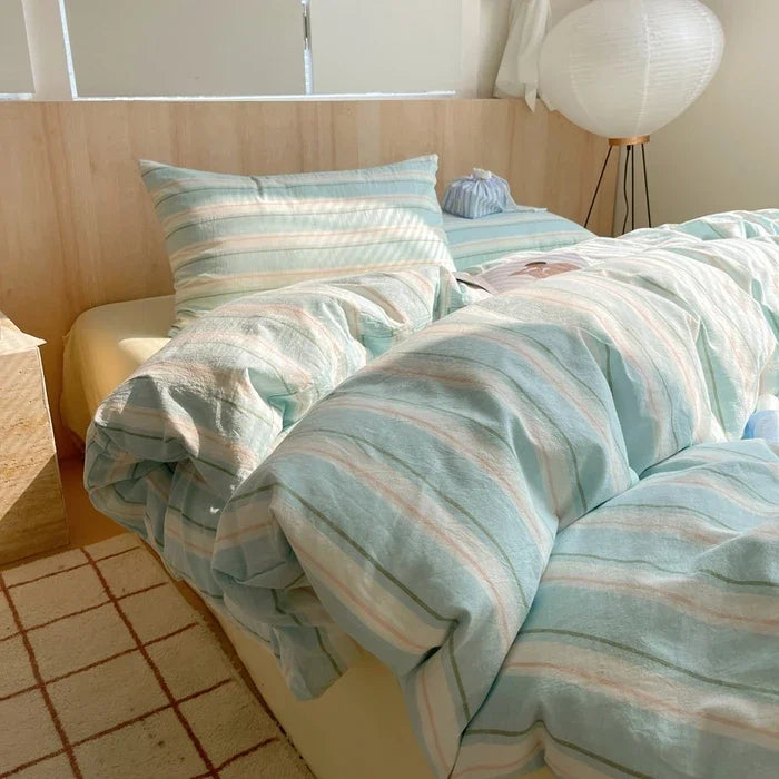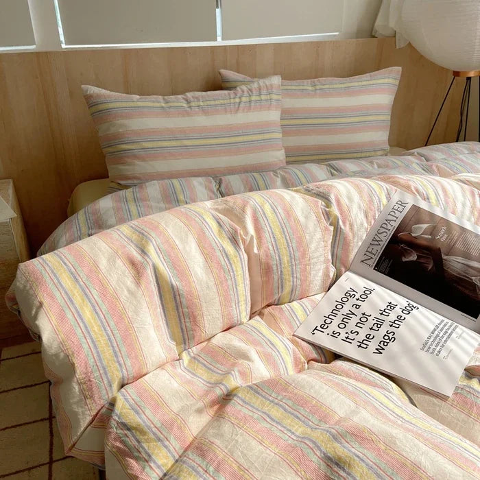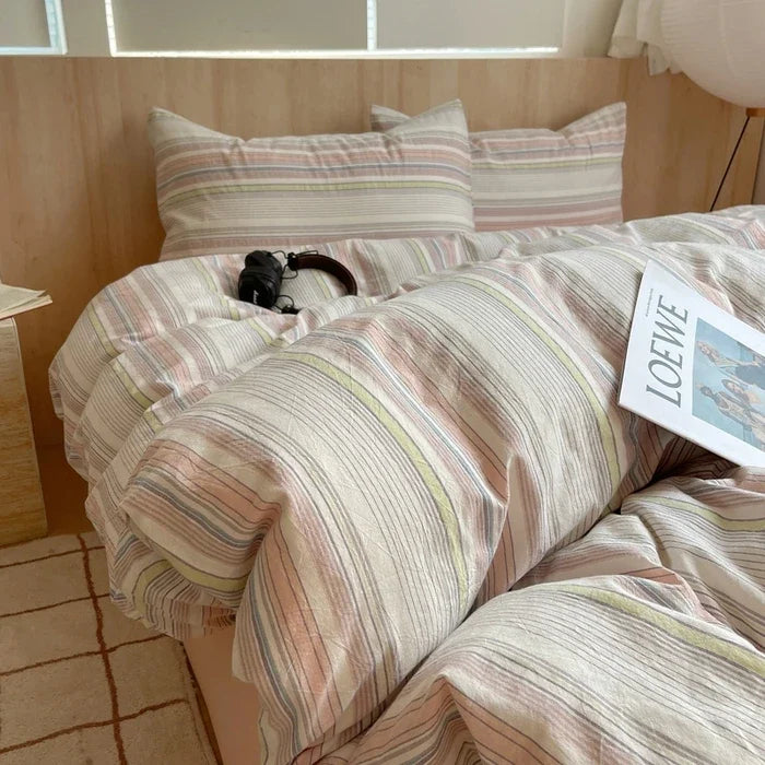 Yeknu Nordic sling Cotton Pink Stripes Duvet Cover 150x200 Size Girl's Room housse Skin friendly Breathable Comforter Sets