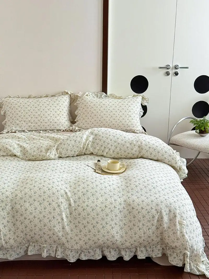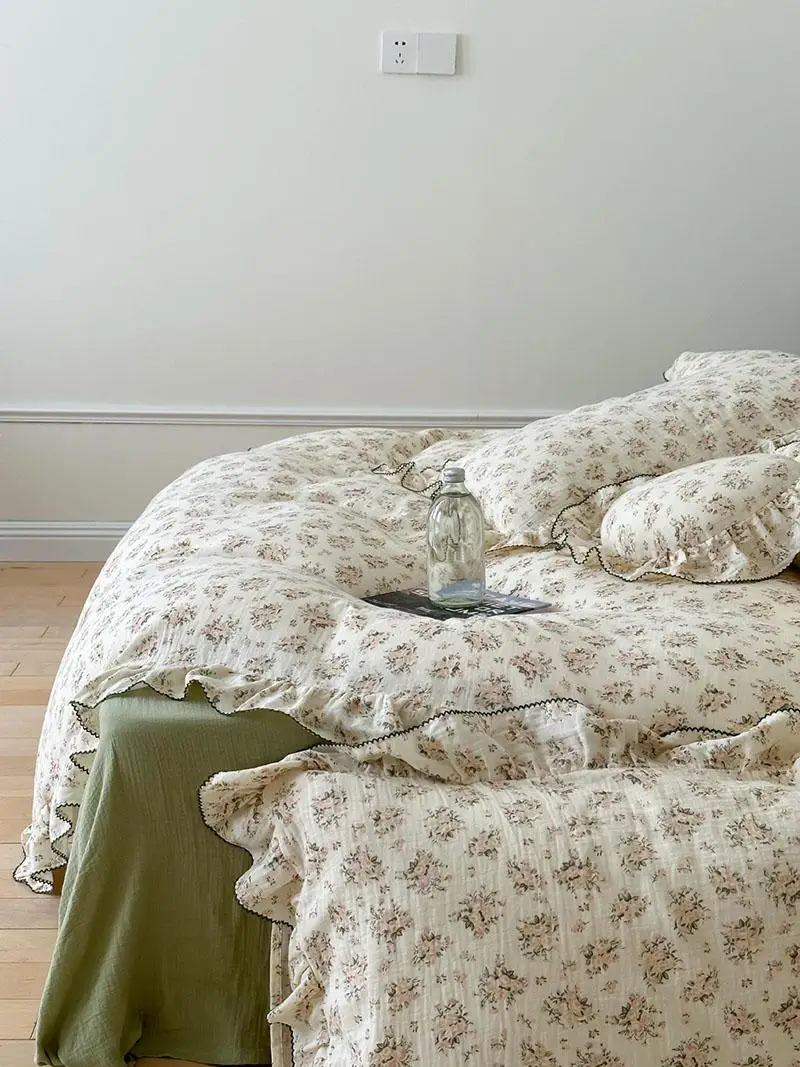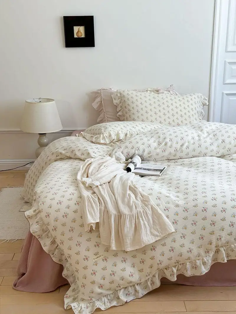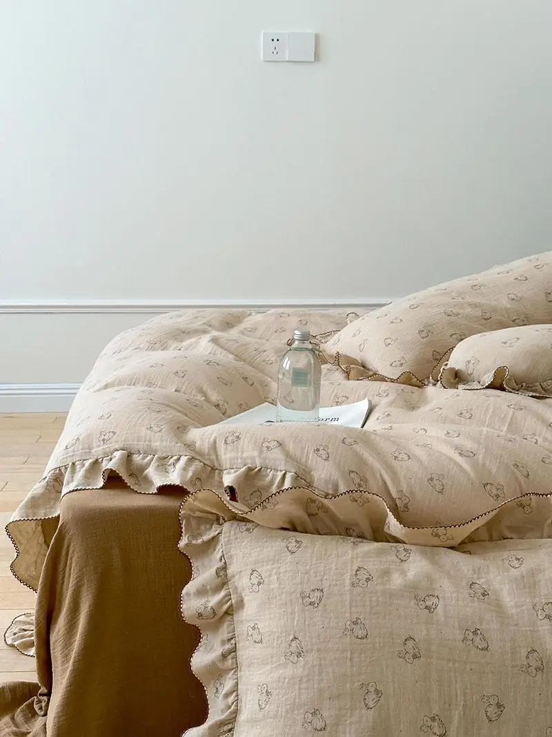 Yeknu Pure Cotton Printed Double-Layer Yarn Quilt Cover Luxury Nude Sleeping Duvet Cover for Kids Adults Single Double Size Bedding