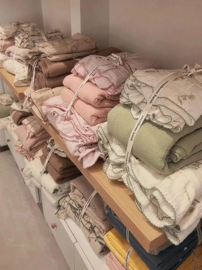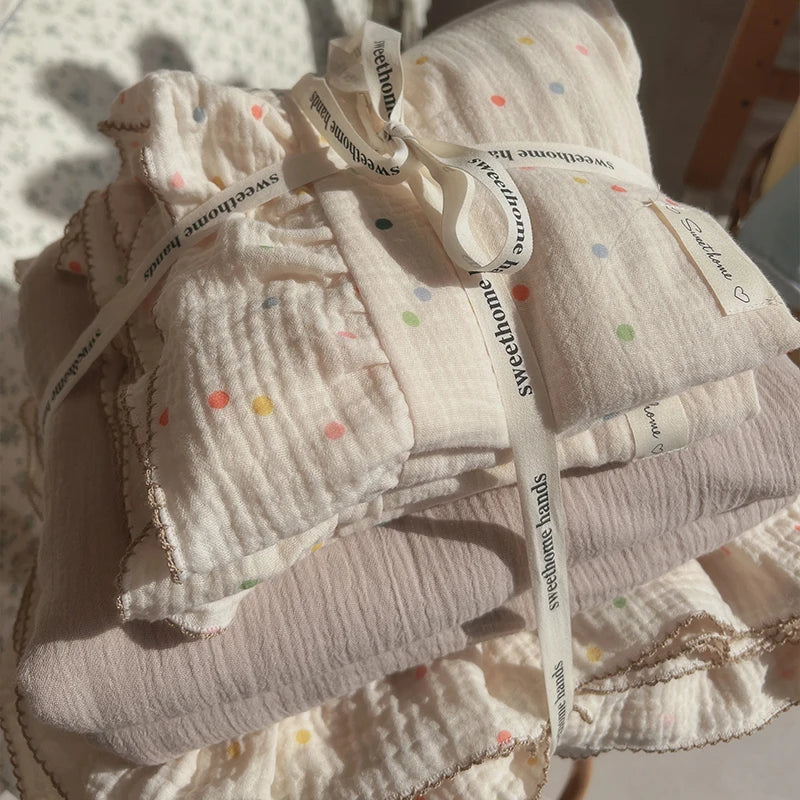 Yeknu  Pure Cotton Printed Double-Layer Yarn Quilt Cover Luxury Nude Sleeping Duvet Cover for Kids Adults Single Double Size Bedding