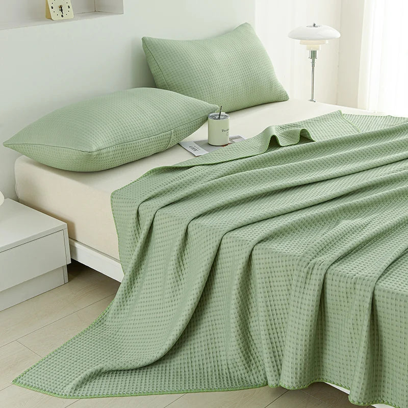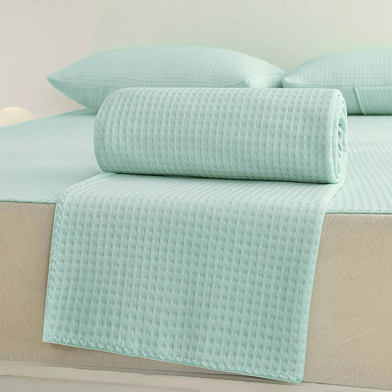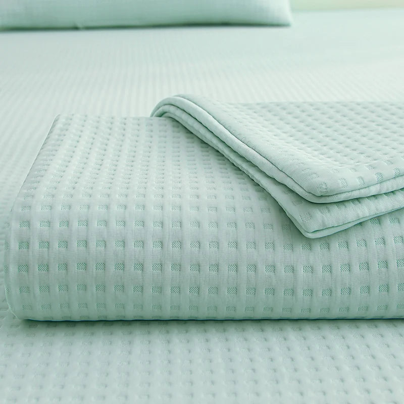 Yeknu High-end Waffle Plaid Ice Silk Summer Blanket for Bed Double Side Cool Feel Silk Air Conditioning Quilt Cooling Duvet Comforter