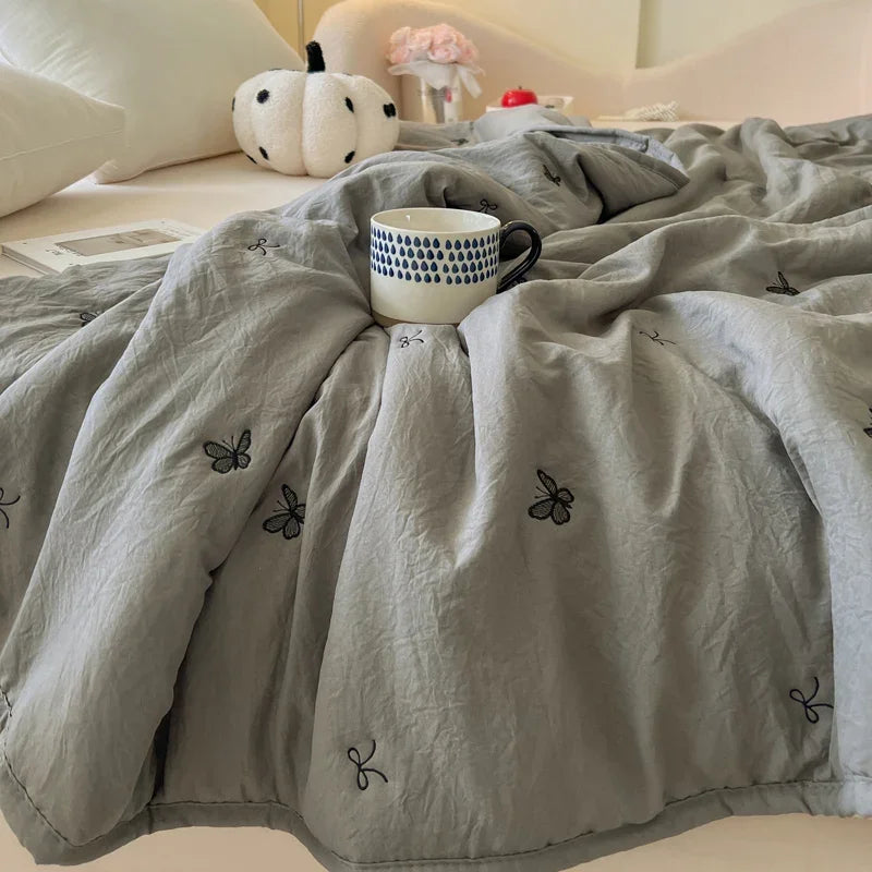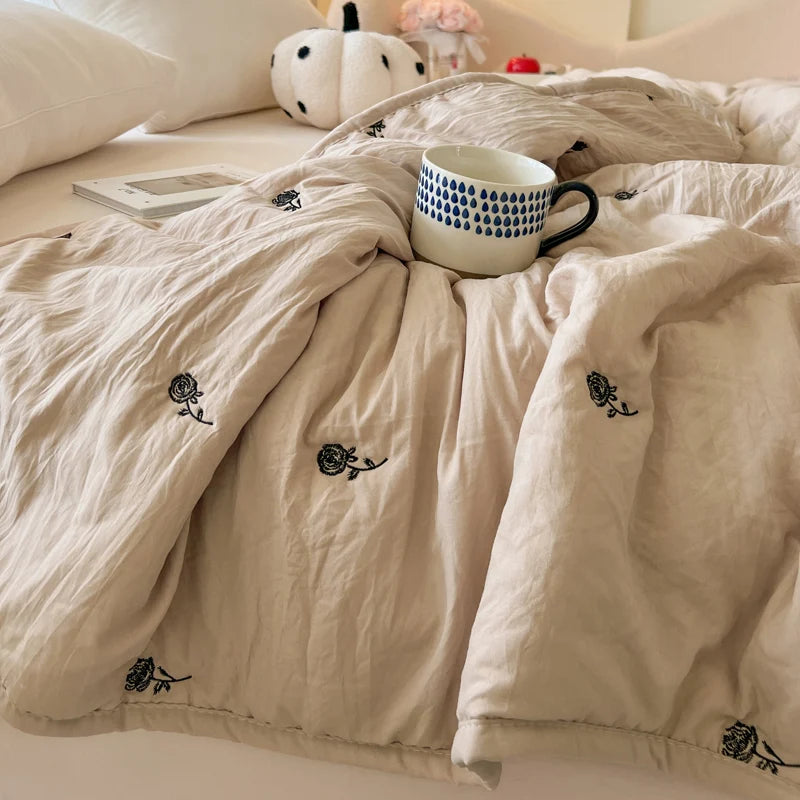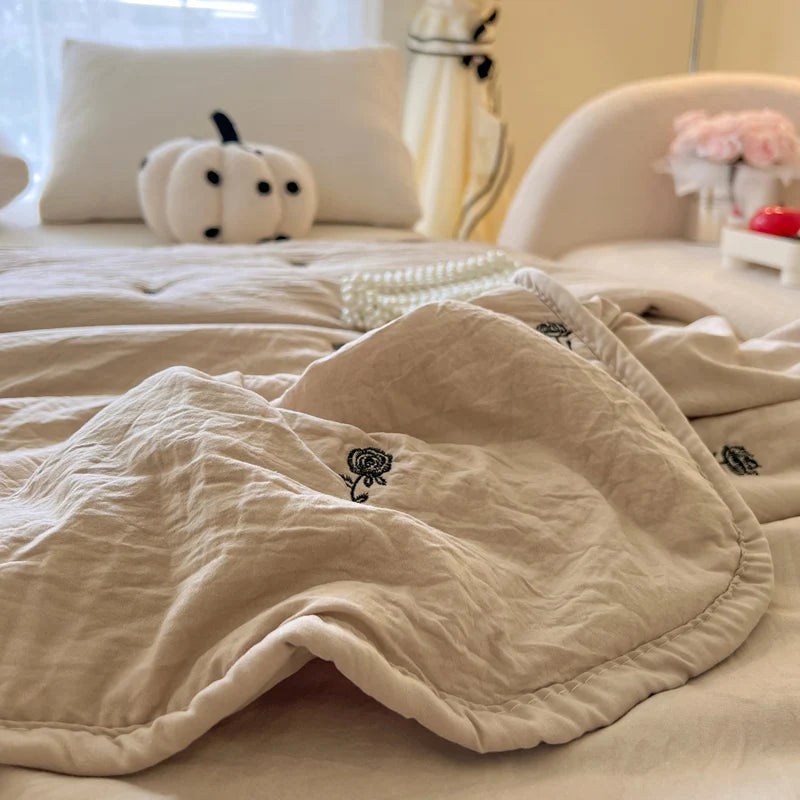Yeknu Japanese Minimalism Skin-friendly Summer Blanket Soft Breathable Single Double Duvet Washed Embroidered Comfortable Thin Quilt