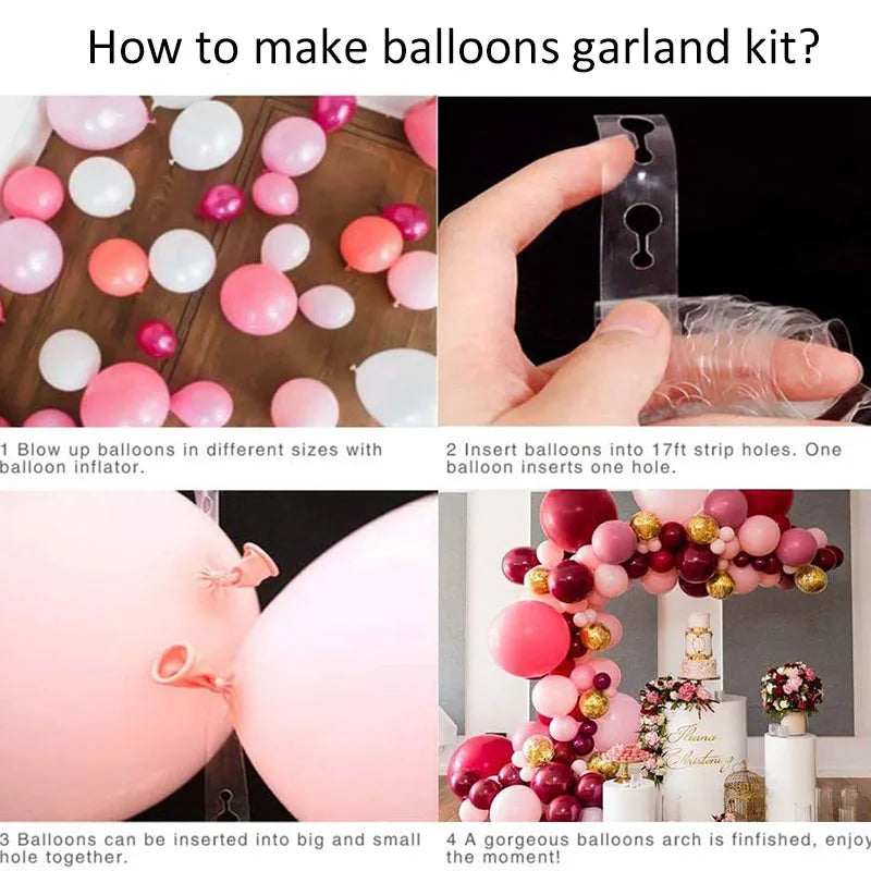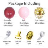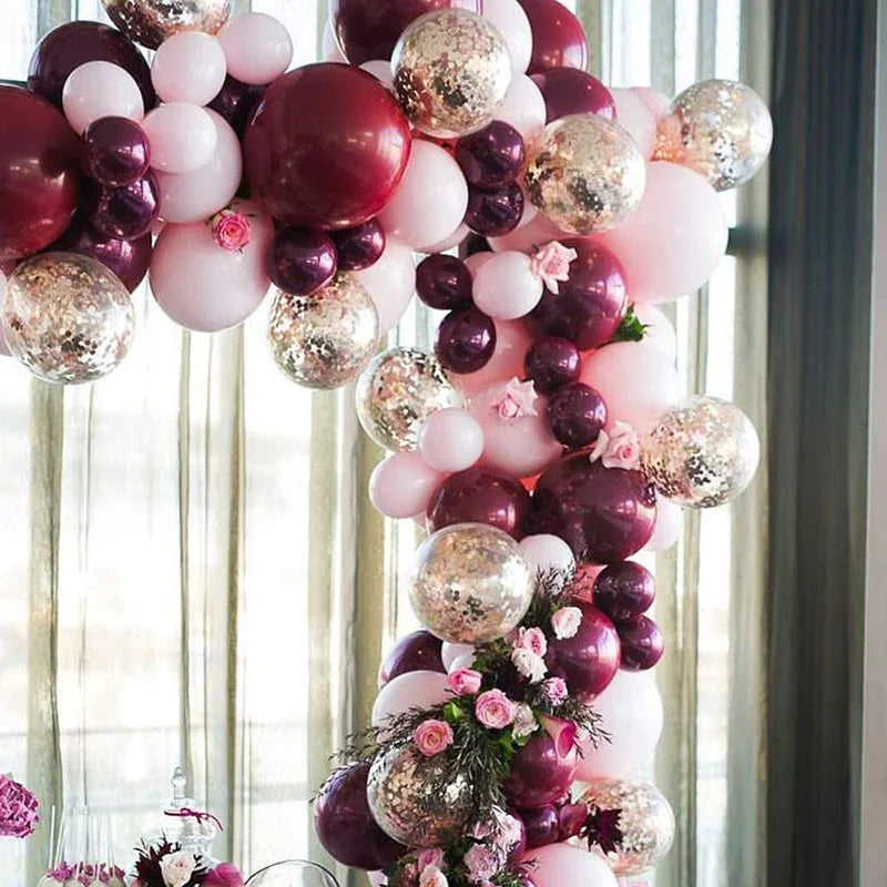 Yeknu 134Pcs Burgundy Wine Red Pink Balloons Arch Garland Kit Gold Confetti Balloons Valentine's Day Decor New Year Decoration