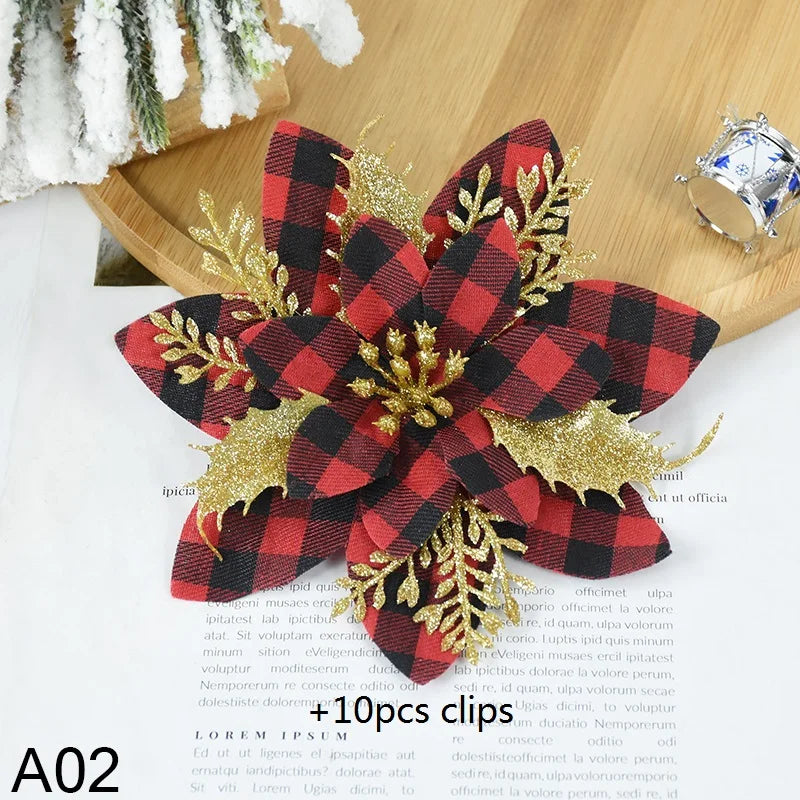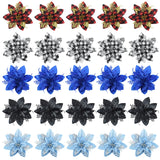 Yeknu 5.7 Inch Artificial Blue and Black Christmas Glitter Flowers with Clips 5/10pcs Xmas Tree Flower Ornaments Noel New Year Decor