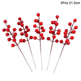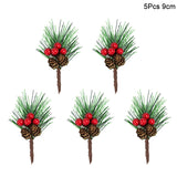 Yeknu 5Pcs Christmas Red Berry Articifial Flower Pine Cone Branch Christmas Tree Decorations Ornament Gift Packaging Home DIY Wreath