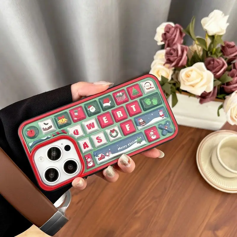 Yeknu Cartoon Santa Claus Bell Christmas Tree Case Compatible for IPhone 16 13 11 15 12 14 Pro Max 16 12 15 13 Pro 3D Keyboard Cover