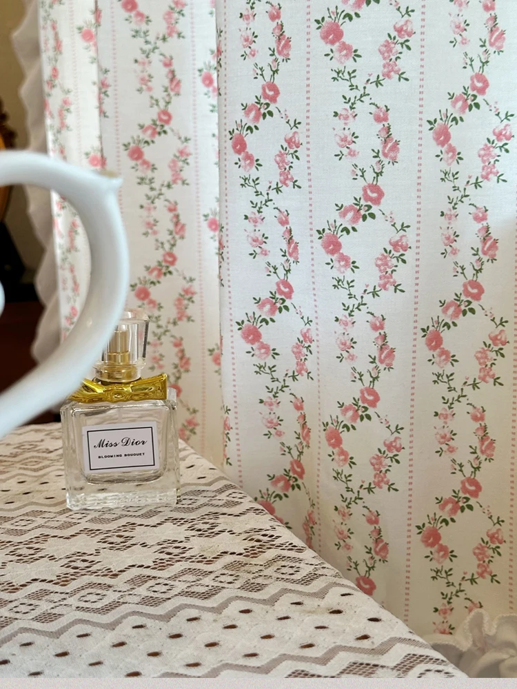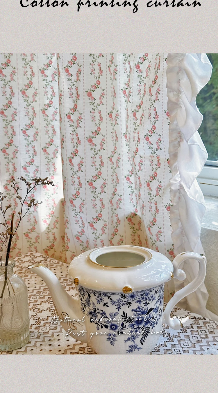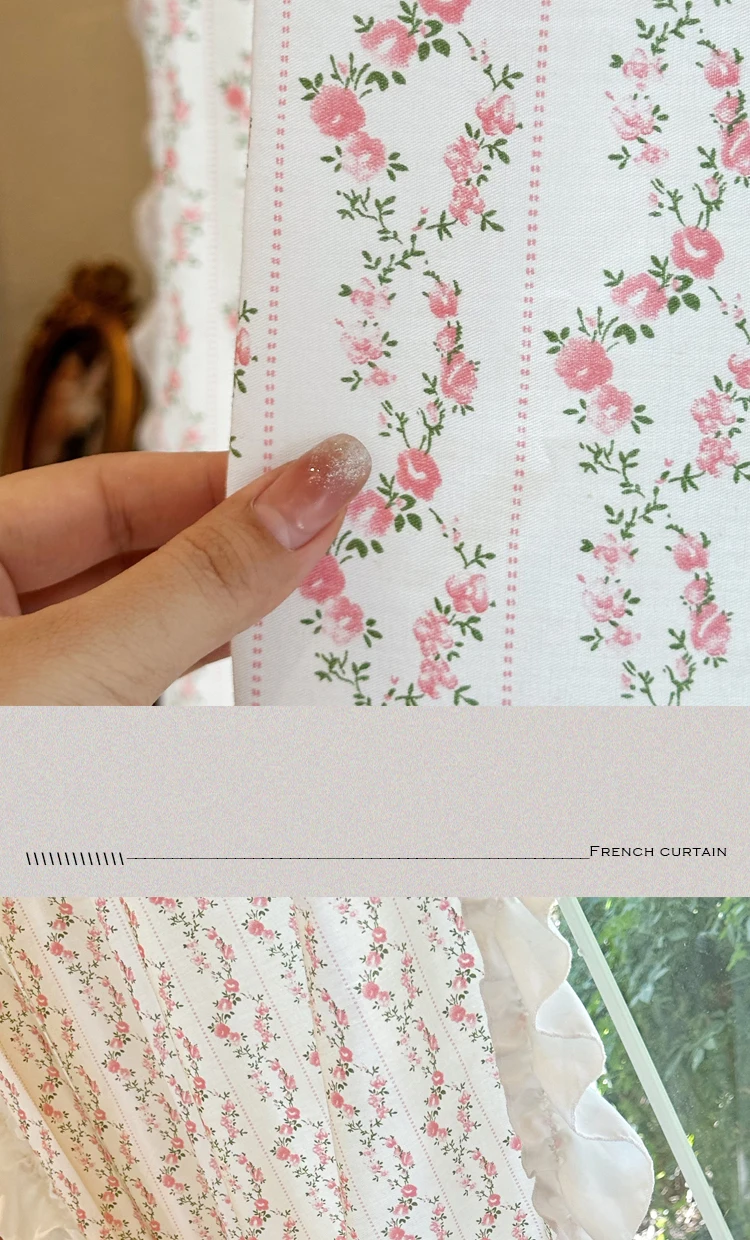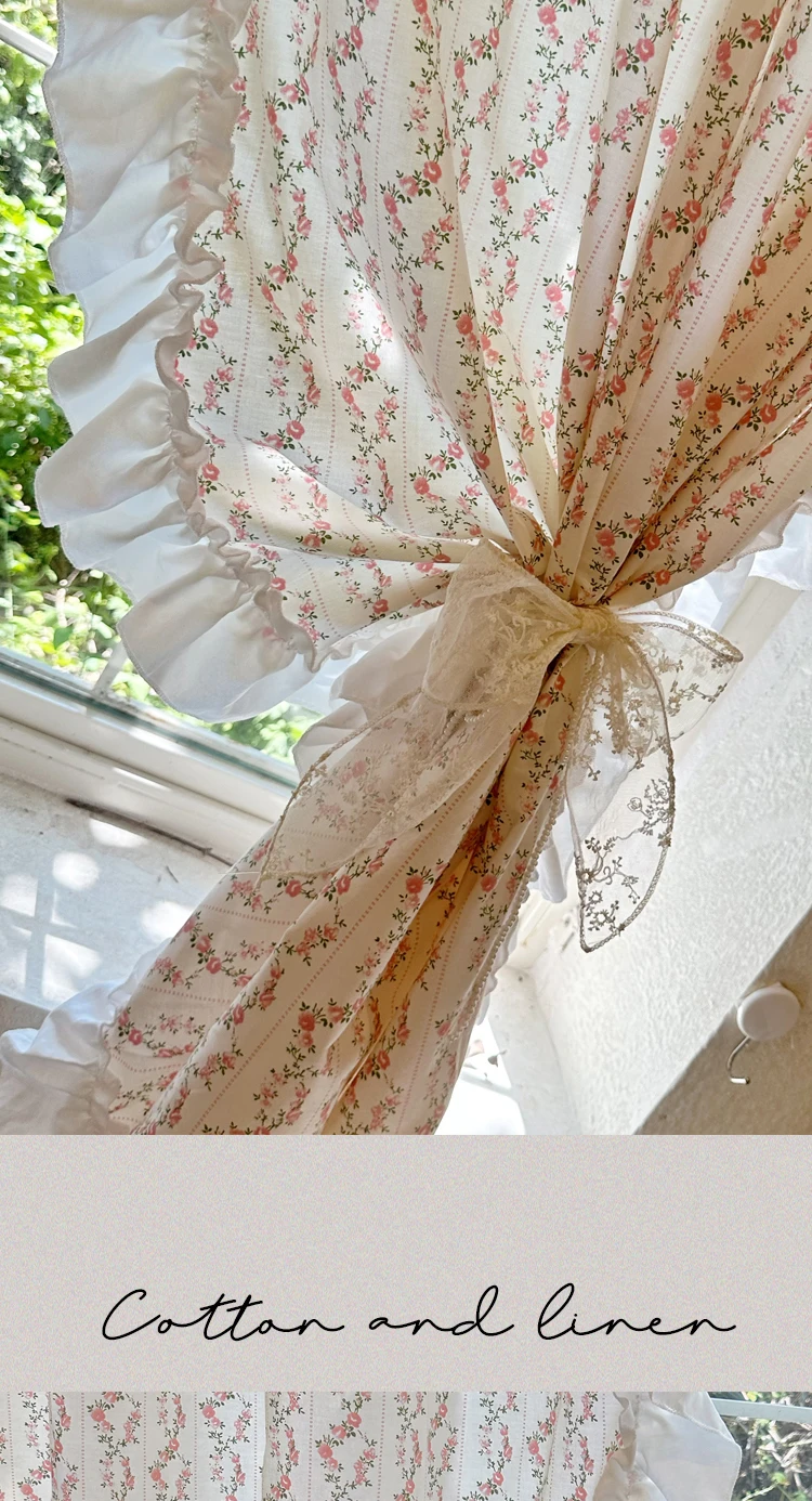 Yeknu Printed Cotton Curtain Pastoral Floral Partition Half Curtain Blind Door Curtain French Style Fresh and Elegant Room Decoration
