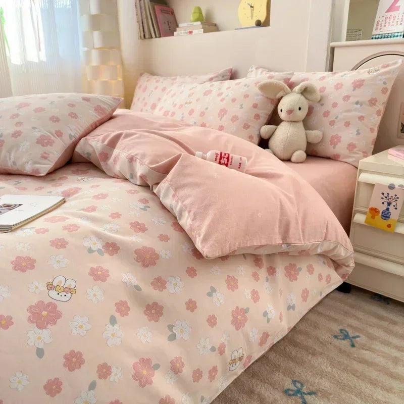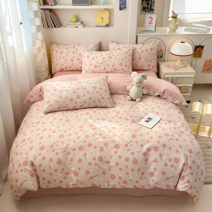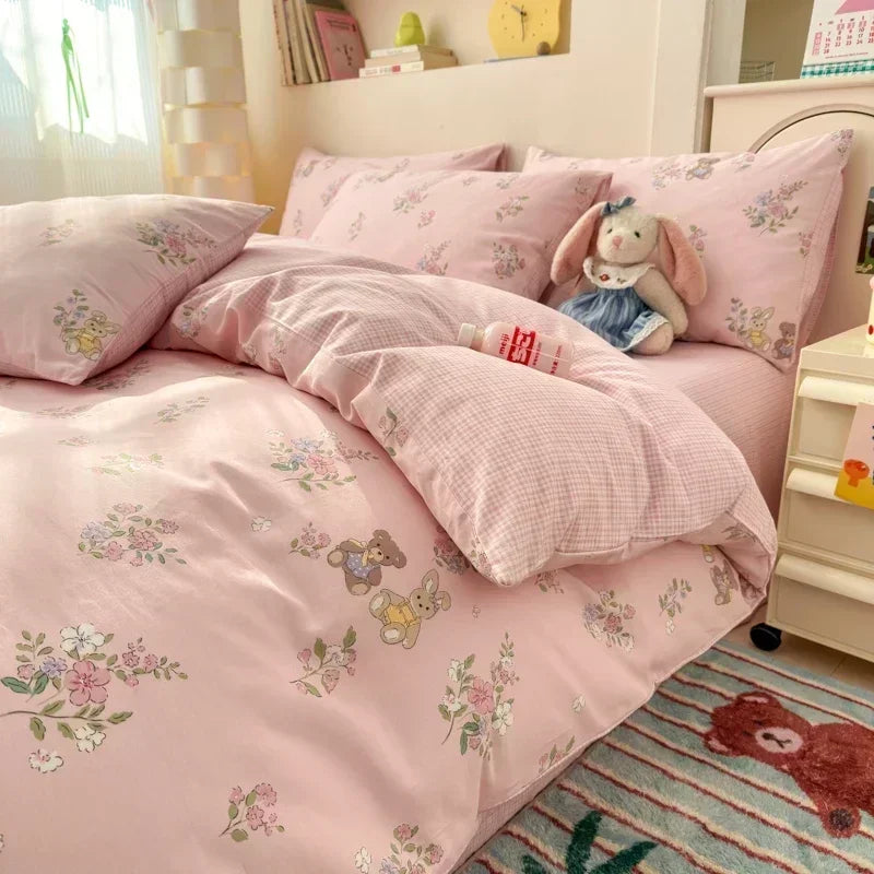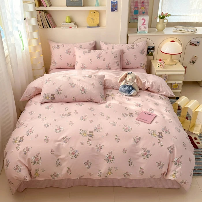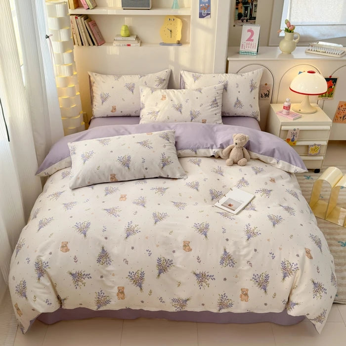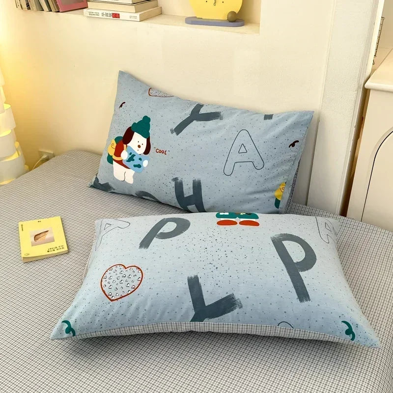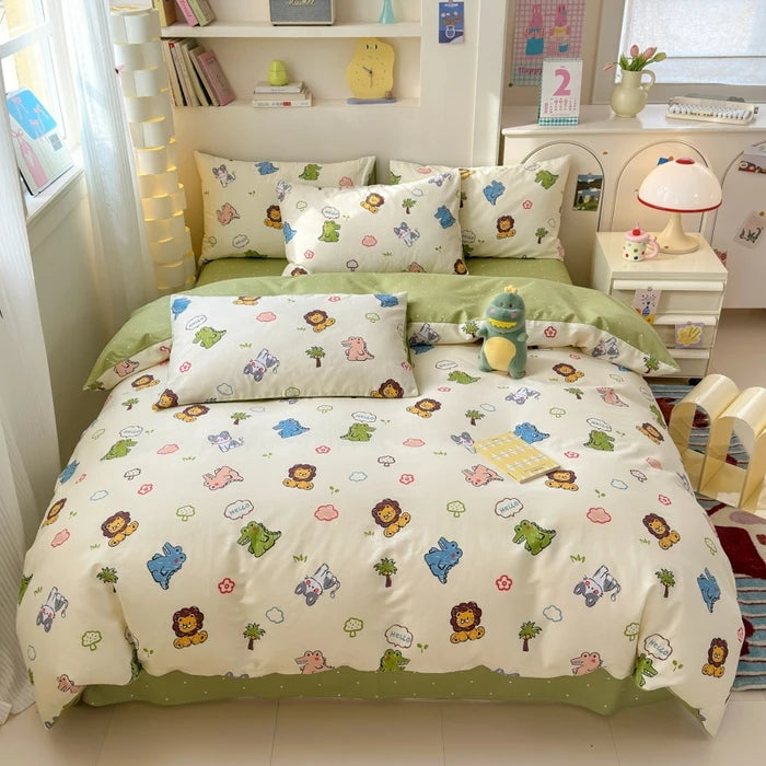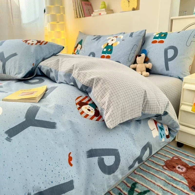 Yeknu 100% Cotton 4-Piece Duvet Cover Set (1 Duvet Cover 2 Pillowcases 1 sheet), Minimalist Cartoon Design, Ultra-Soft Bedding Set