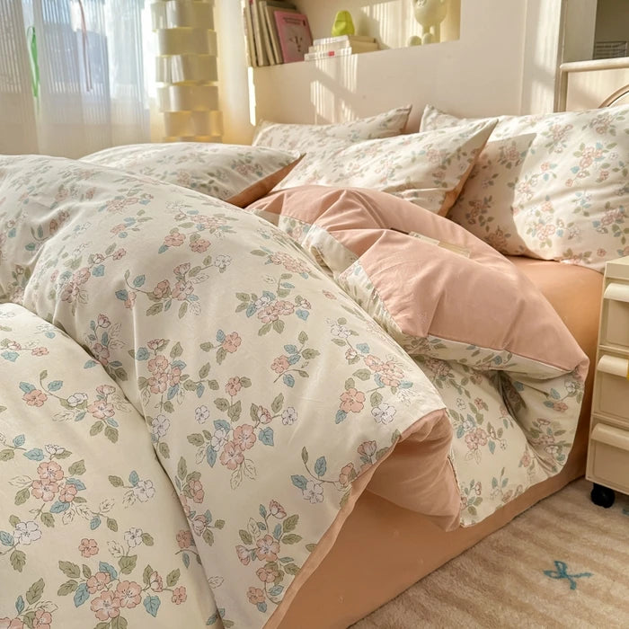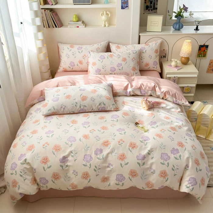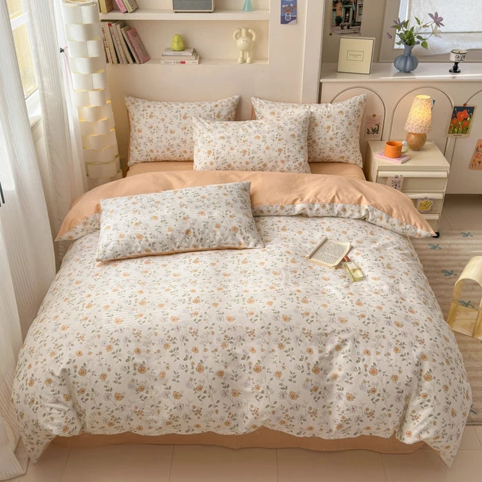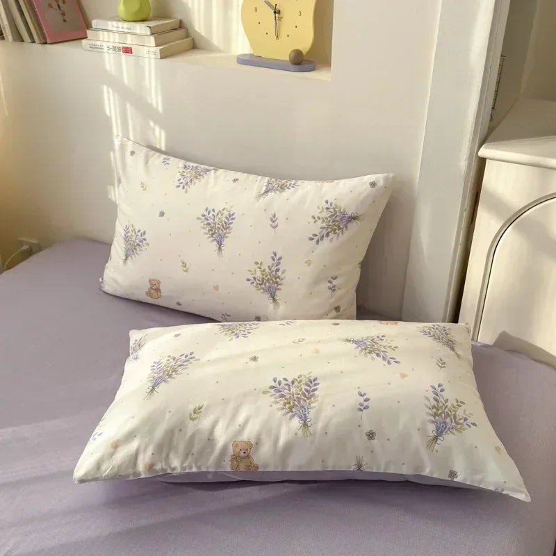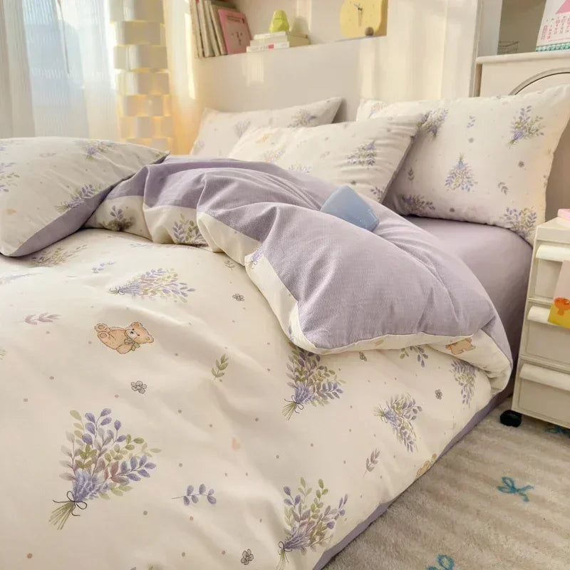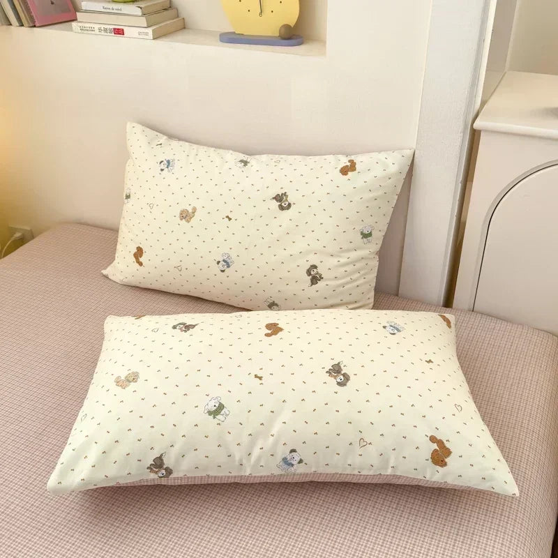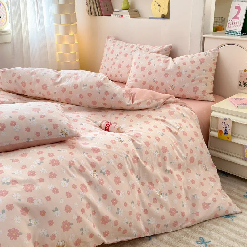 Yeknu 100% Cotton 4-Piece Duvet Cover Set (1 Duvet Cover 2 Pillowcases 1 sheet), Minimalist Cartoon Design, Ultra-Soft Bedding Set