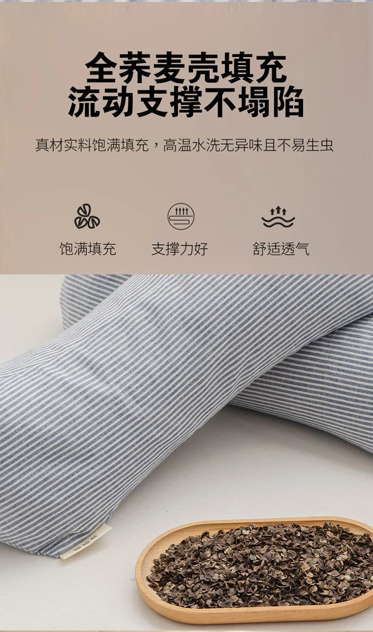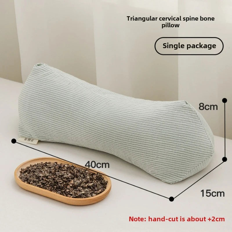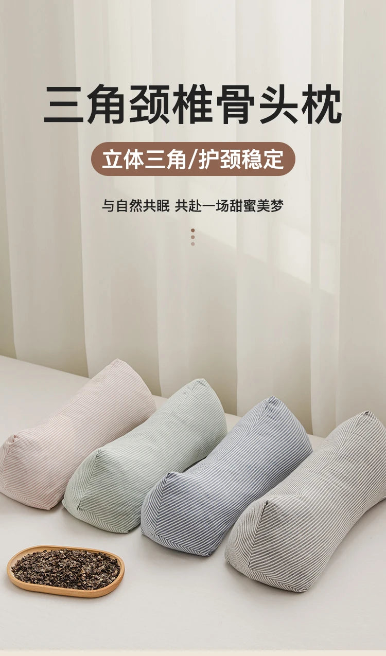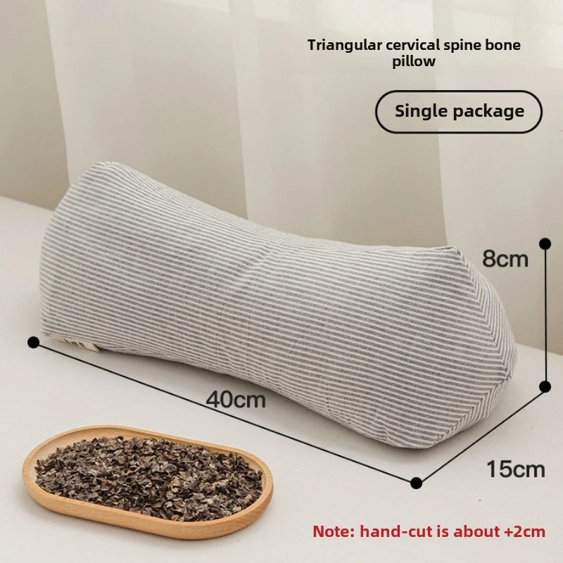 Yeknu 2025 new pure cotton three-dimensional triangular striped buckwheat pillow full buckwheat hull filling to protect cervical spine