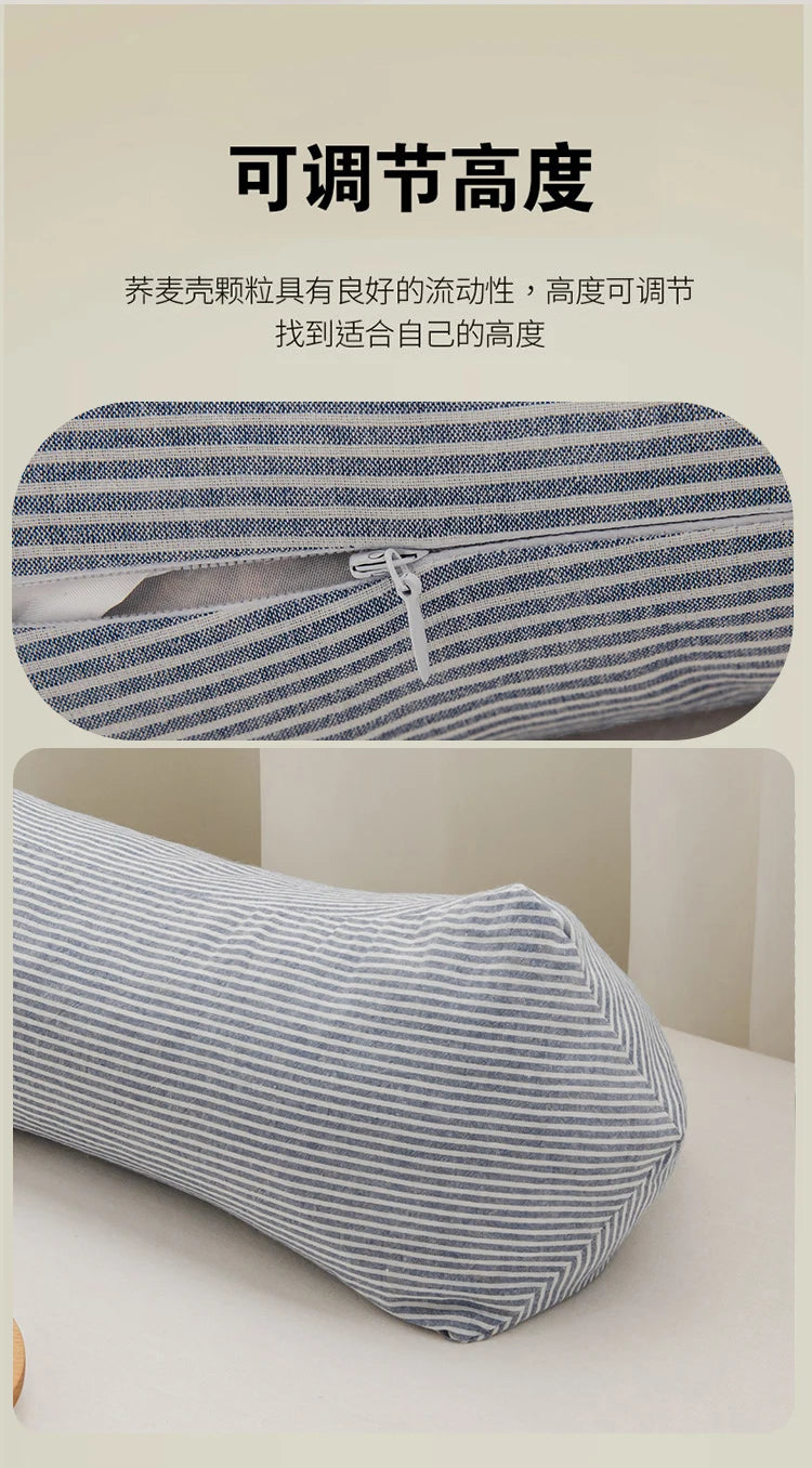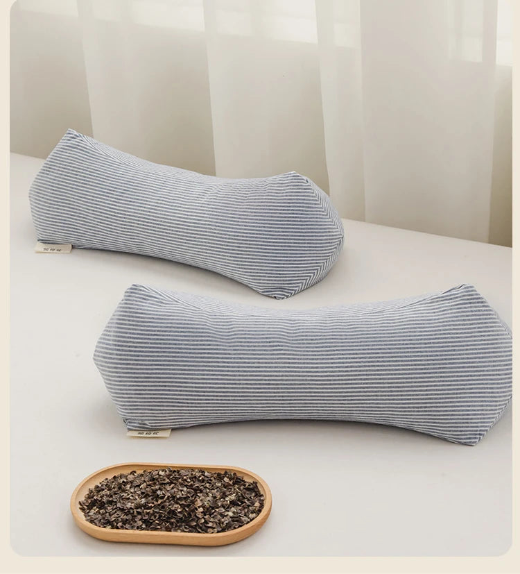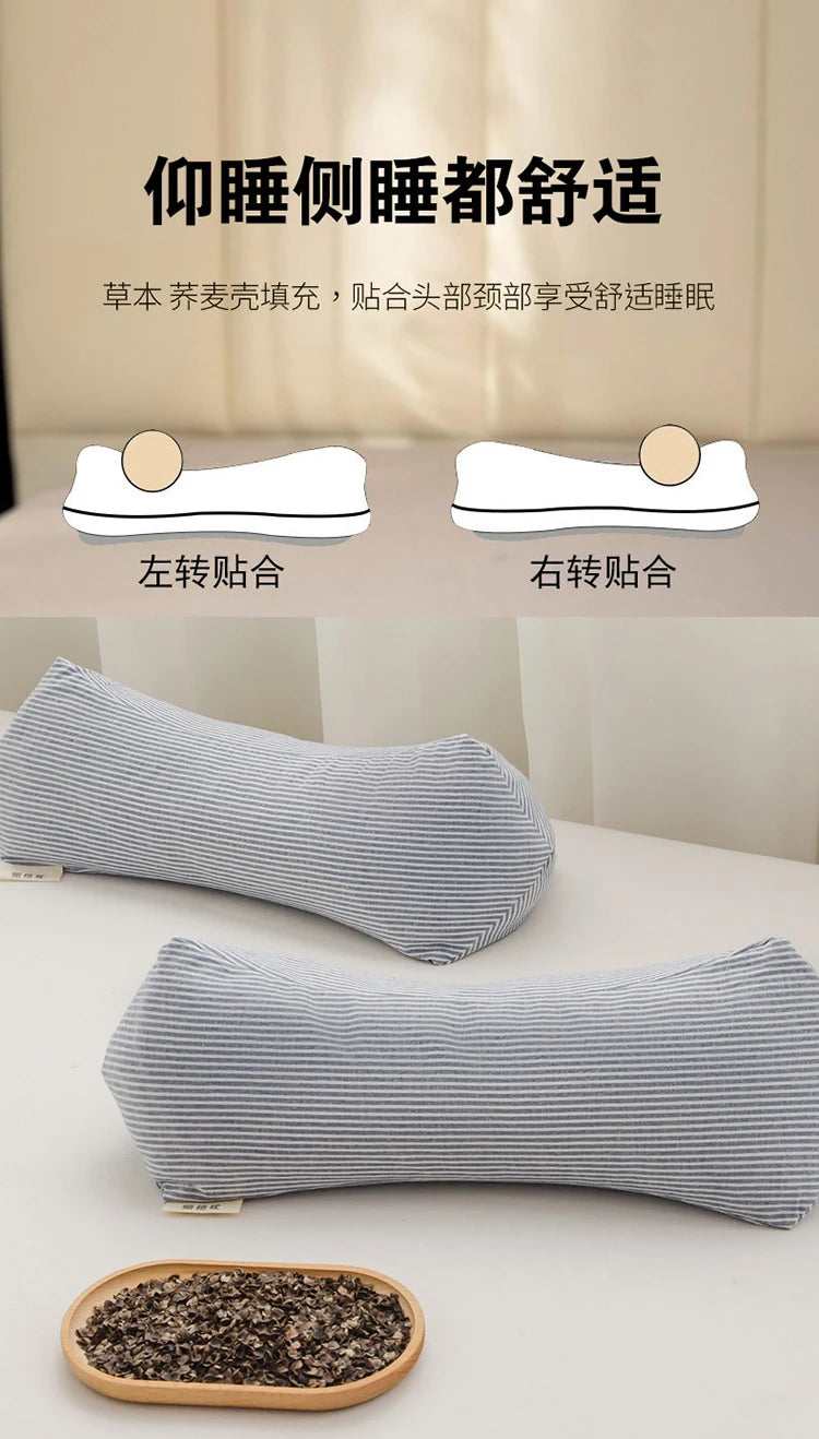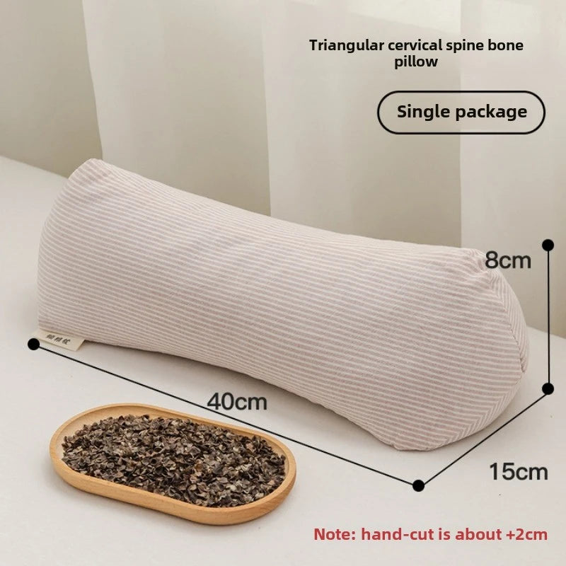 Yeknu 2025 new pure cotton three-dimensional triangular striped buckwheat pillow full buckwheat hull filling to protect cervical spine