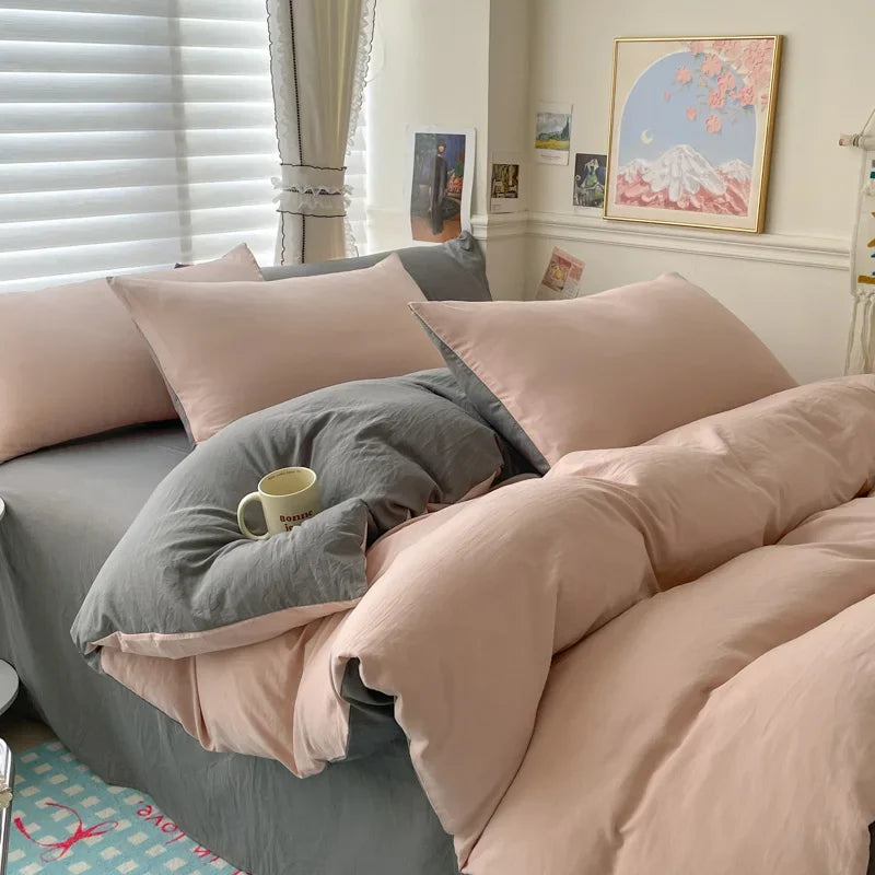 Yeknu Cotton Bed Linen Solid Bedding Set with Sheet Duvet Cover Pillowcases Single Couple Bedsheet King Queen Double Twin Size