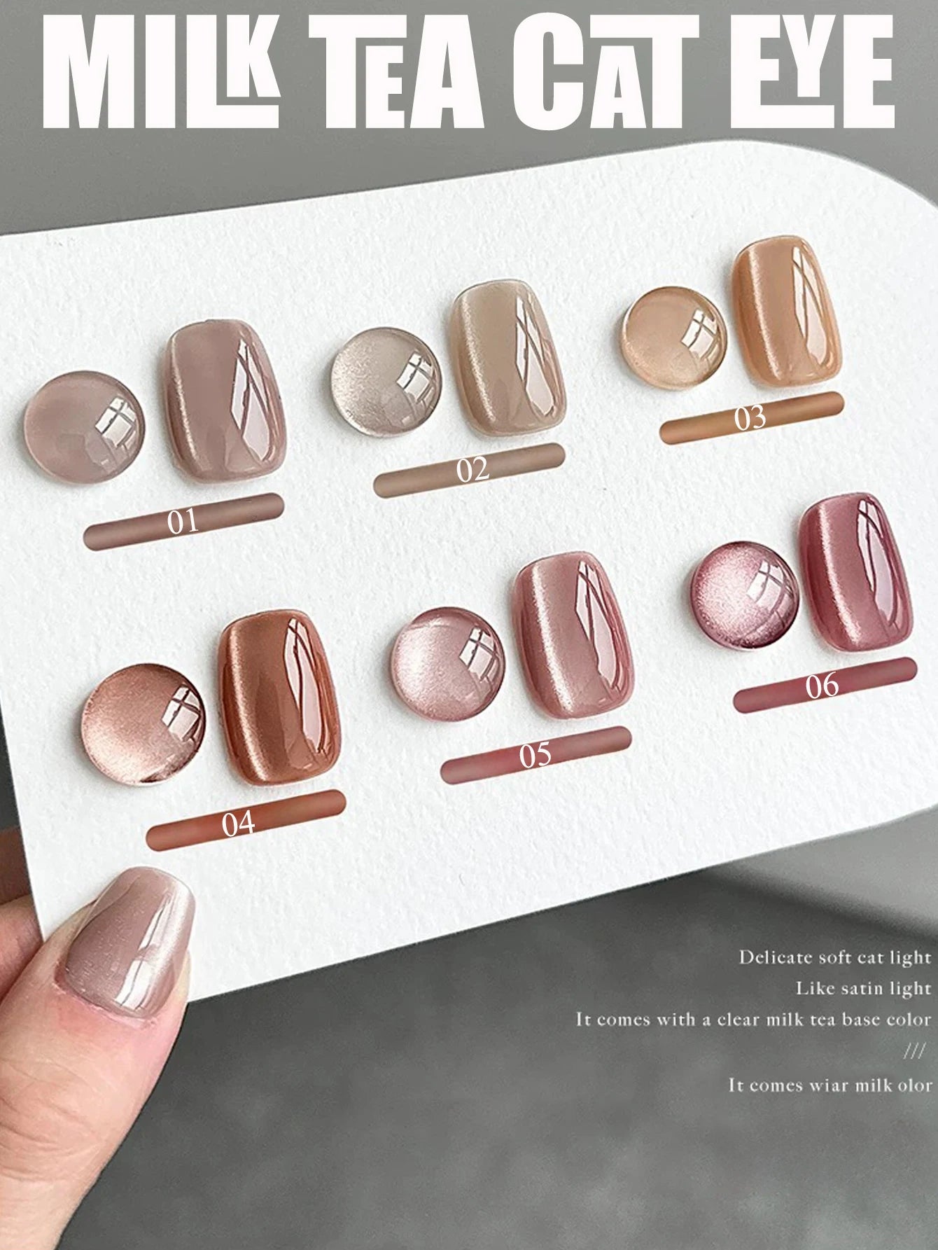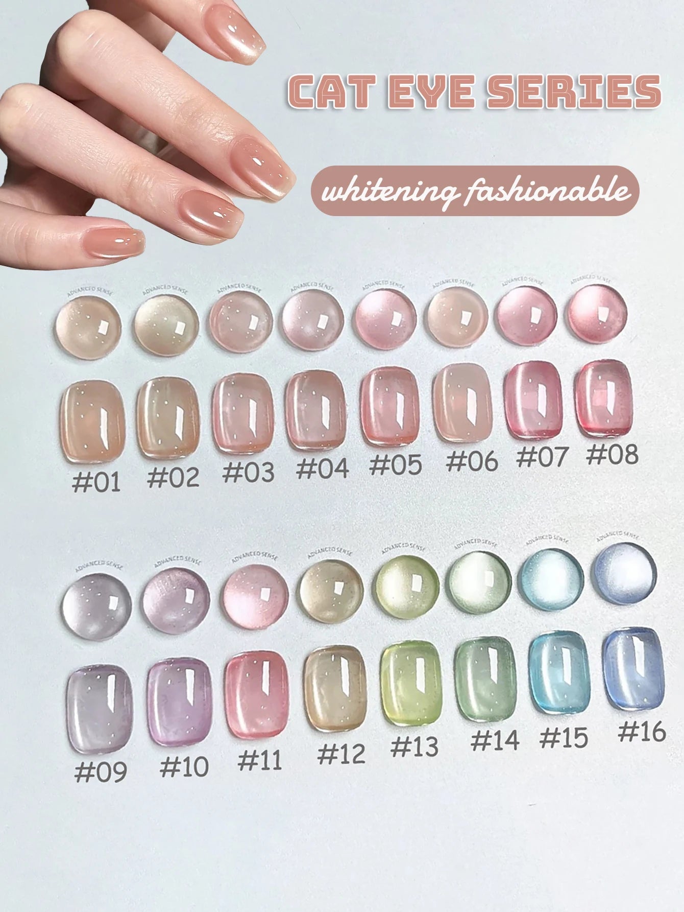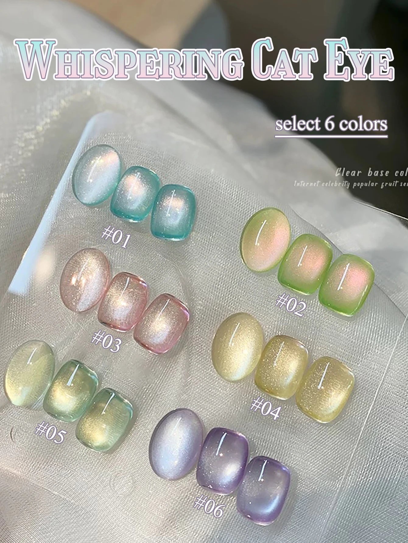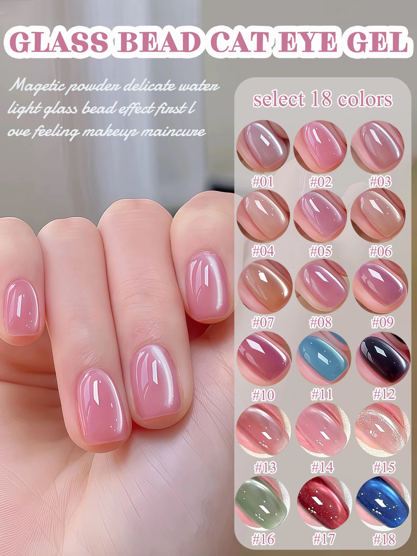 Yeknu 1-24pcs WS Summer Ice Transparents Pink Blue Glass Bead Cat Eye Gel Nail Polish 2025 New Style Nail Salon Nail Art Nail Supplies