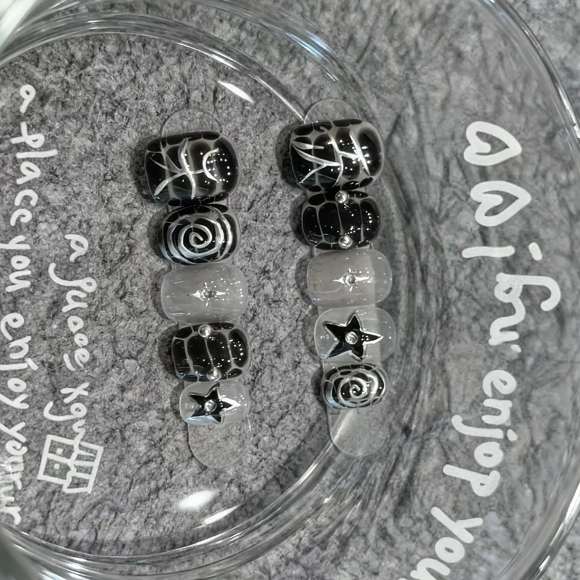 Yeknu 10pcs Dark Sweet Cool Press on Nails Set Short Round Square Nail Hand-painted Embossed Star False Nails Gothic Y2K Fake Nails