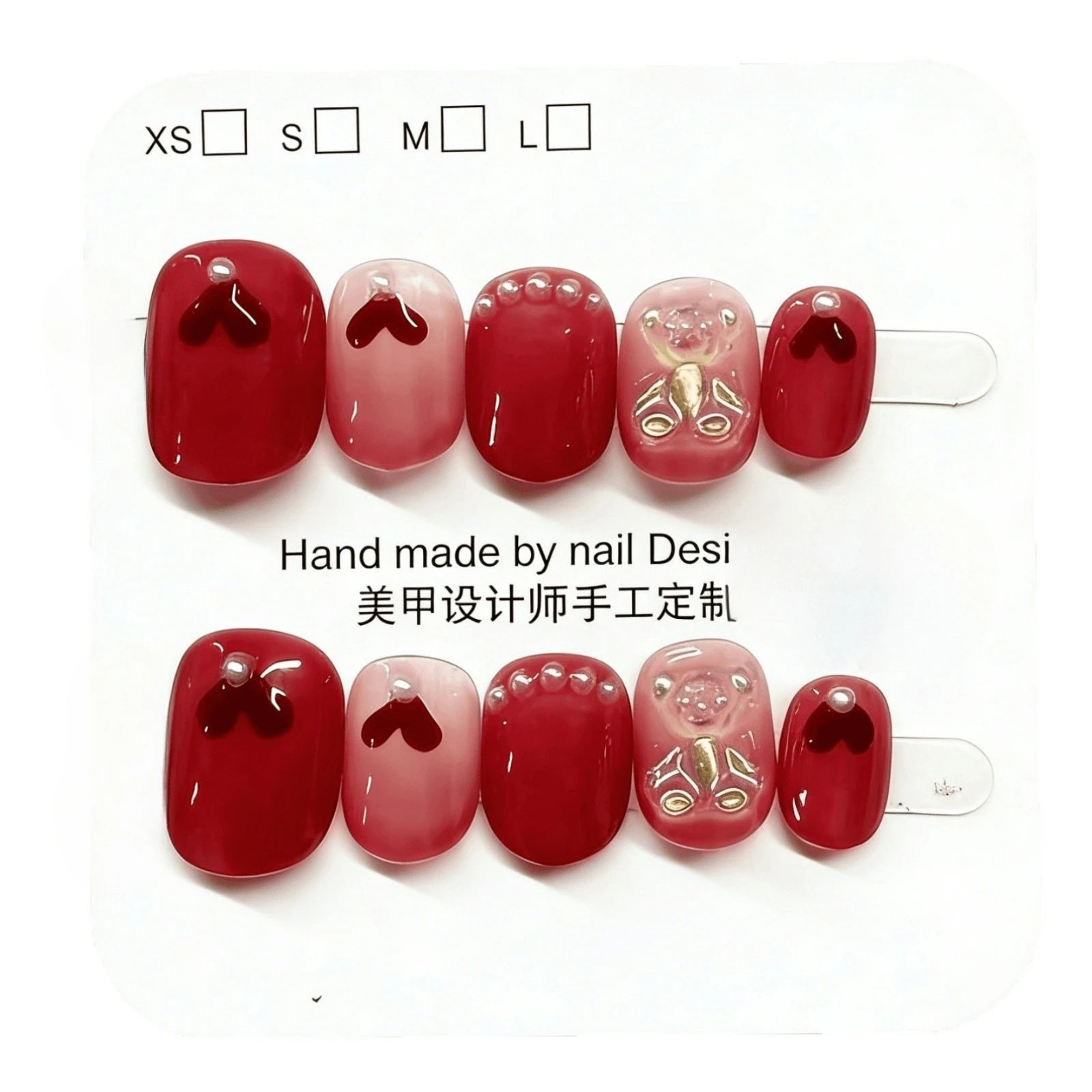 Yeknu 10pcs White French Tip Press on Nail Pink Heart Rhinestone Stick on Nails Sweet Pearl Bow False Nails Short Square Fake Nails