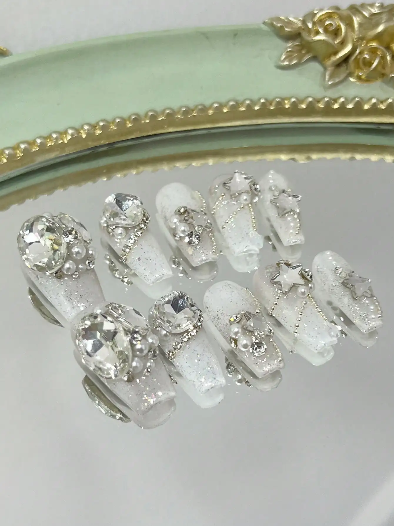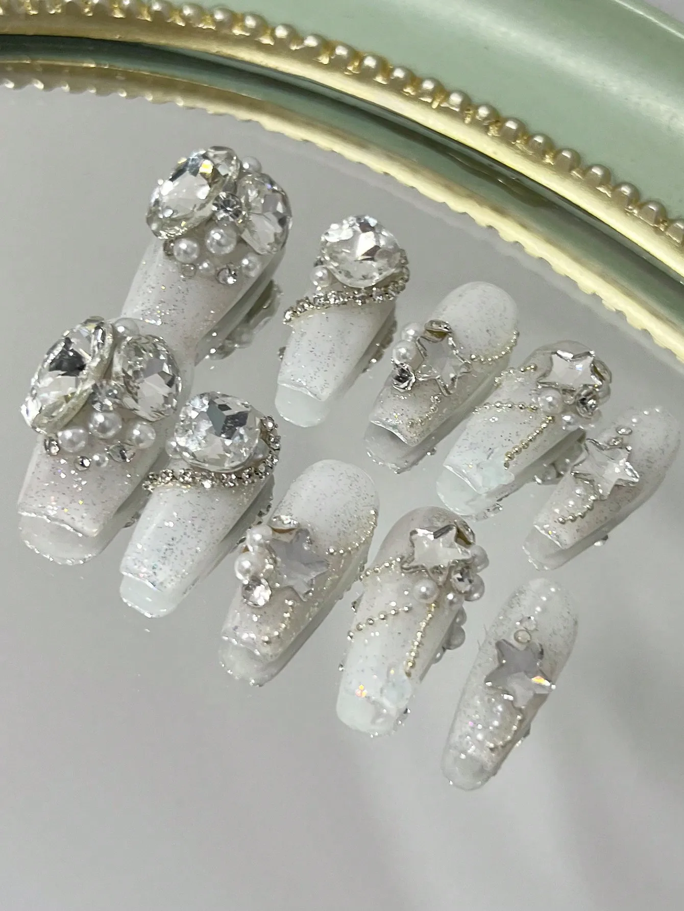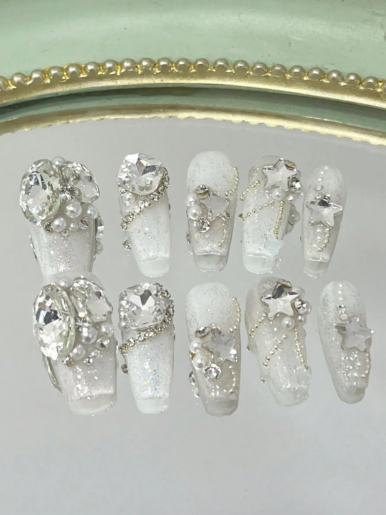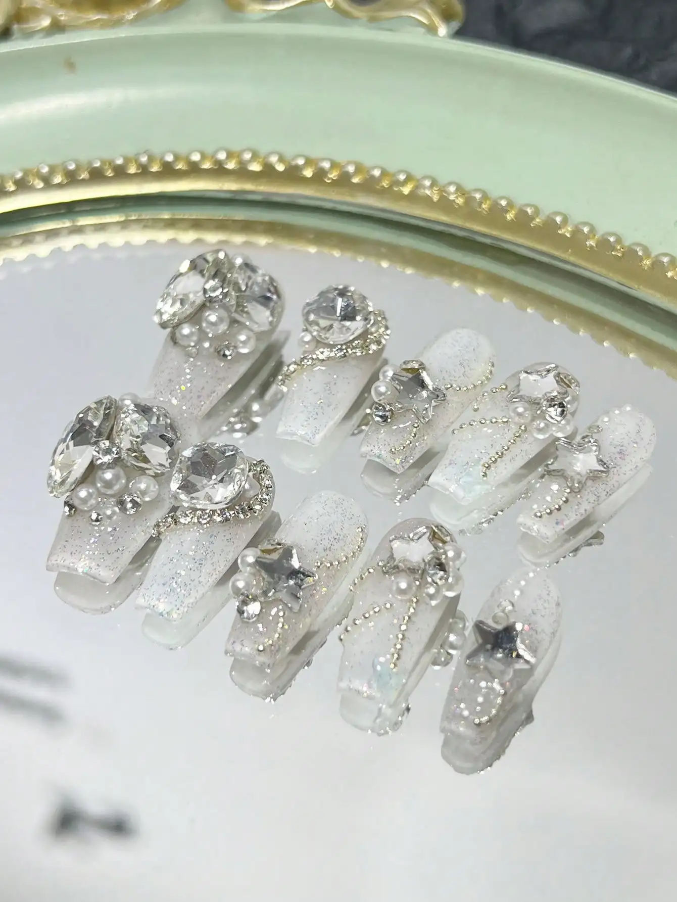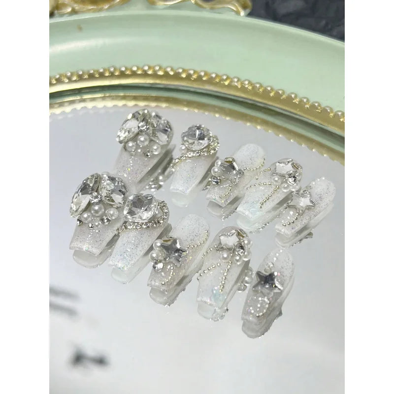 Yeknu 10Sheet Pack Handmade Fake Nails Press-On Long Nails Pipe Nails Coffin Nails Detachable Reusable Suitable for Parties and Festiv