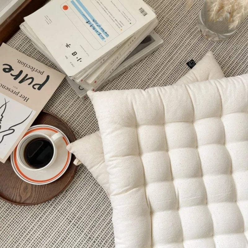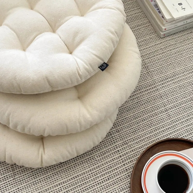 Yeknu high-end tatami round dining chair strap chair cushion Japanese simple white square seat cushion sedentary