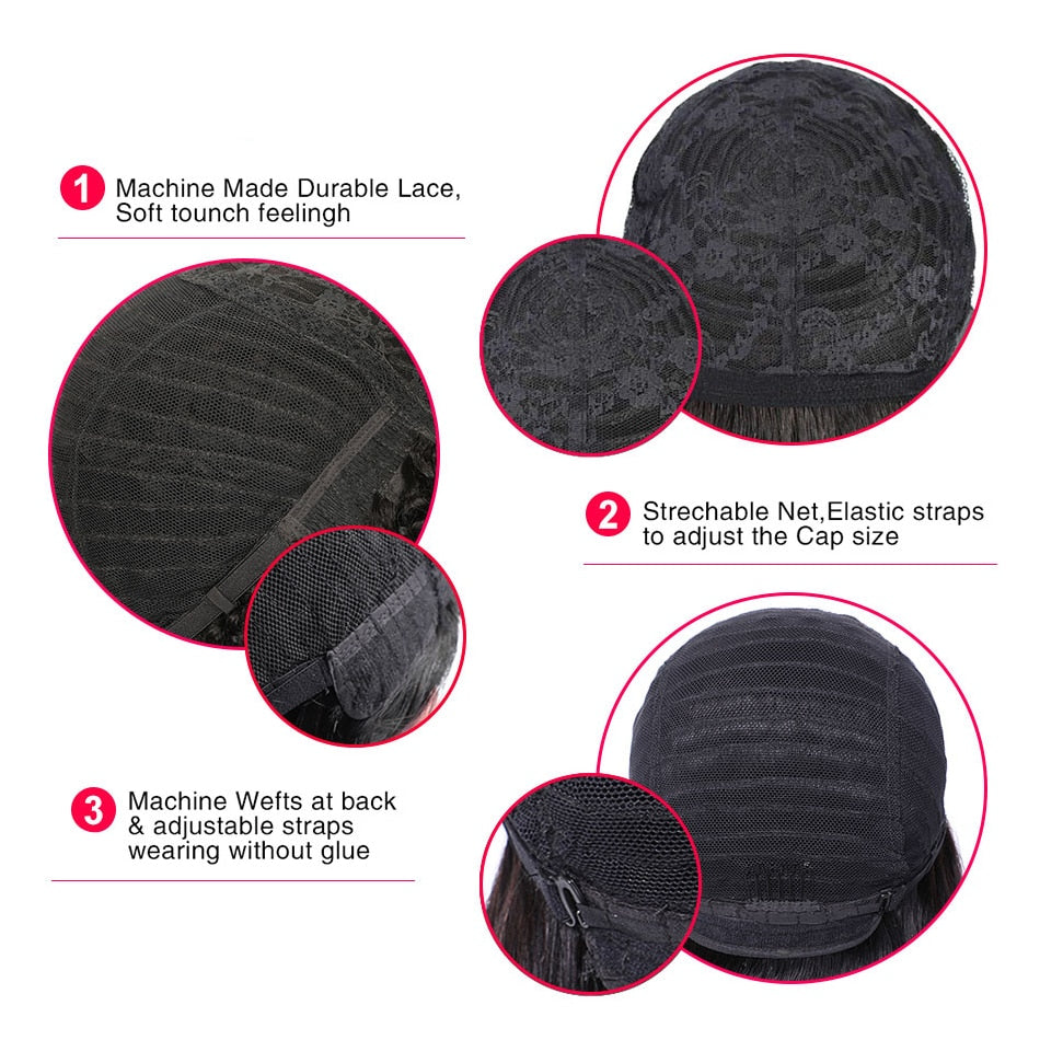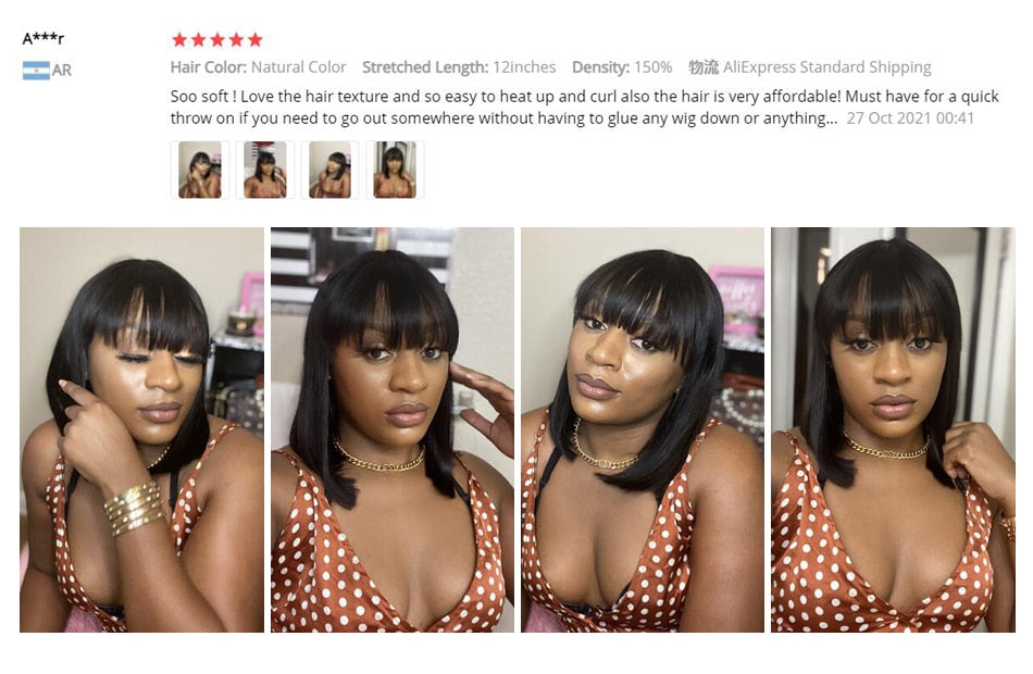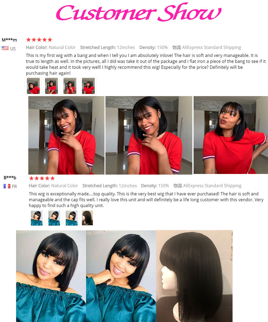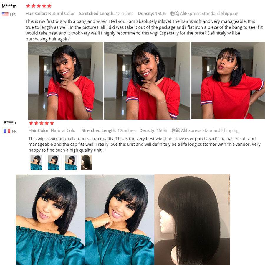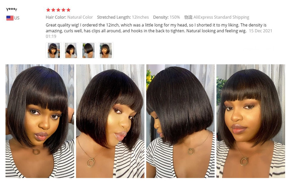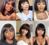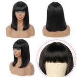 Yeknu Straight Bob Human Hair Wigs With Bangs Short Brazilian Human Hair Bob Wigs For Woman No Lace Full Machine Made Human Hair Wigs