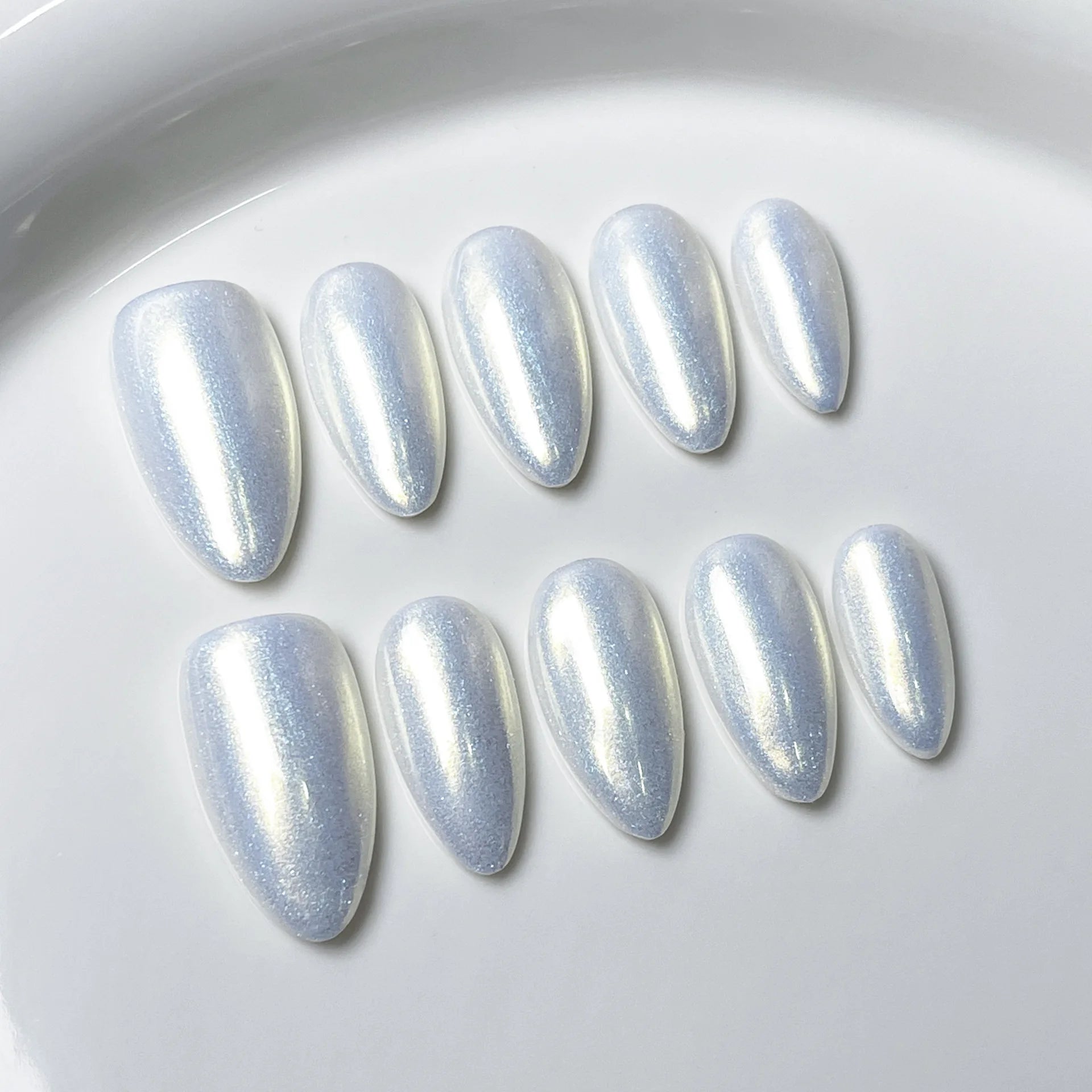 Yeknu 10Pcs Handmade Press on Nails Cat Eye Moon Decorations Aurora False Nails Short Almond Acrylic Wearable Manicure for Spice Girl