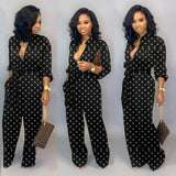 Yeknu New Fashion Jumpsuit For Women Dot Black White Rompers Button Up Self Belted Pockets Womens Jumpsuit Casual Loose Romper