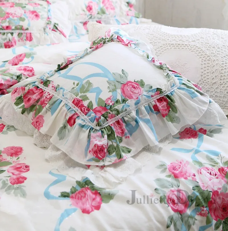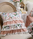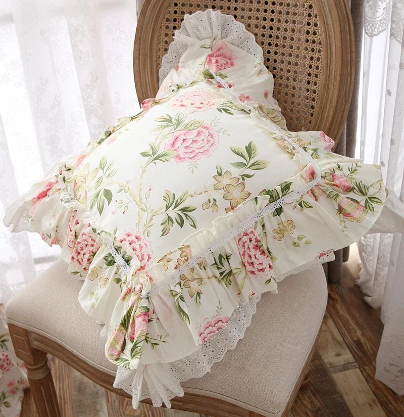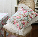 Yeknu Elegant ruffle lace decorative pillowcase European Embroidery bed pillow case princess rose print cushion cover sofa cushions