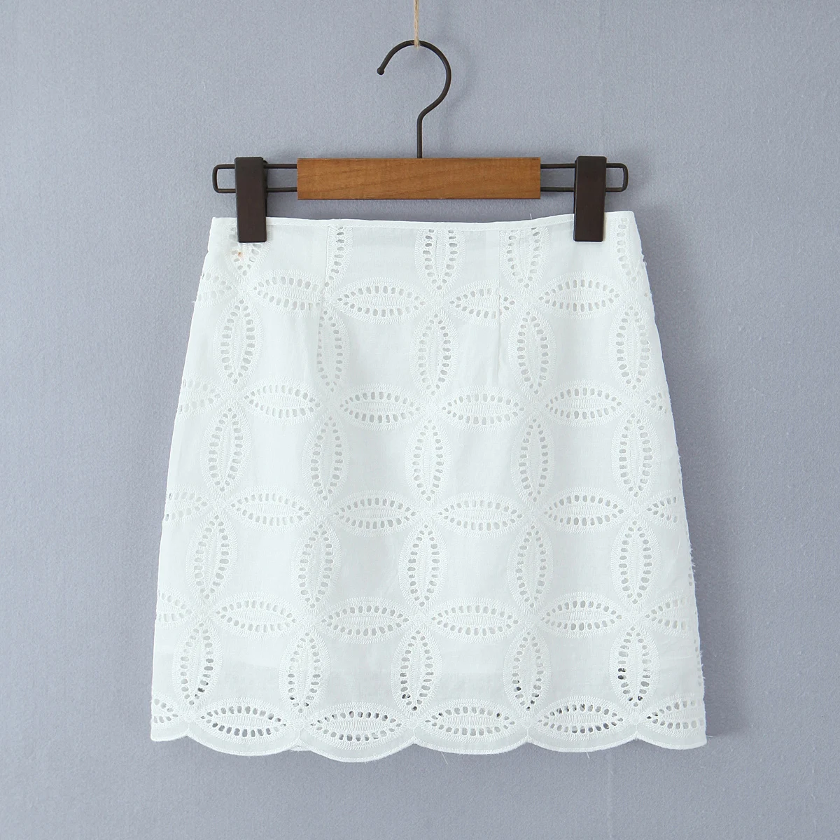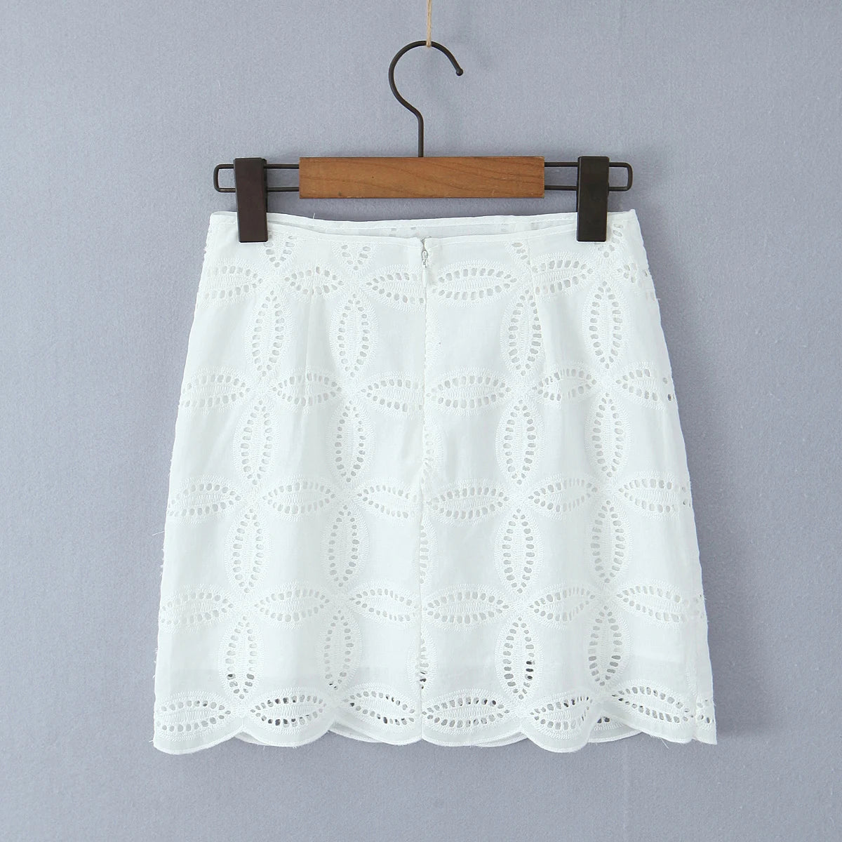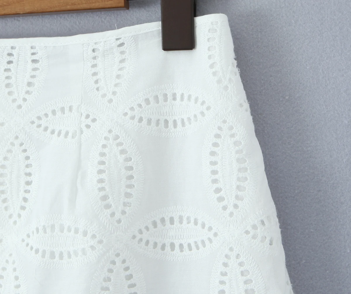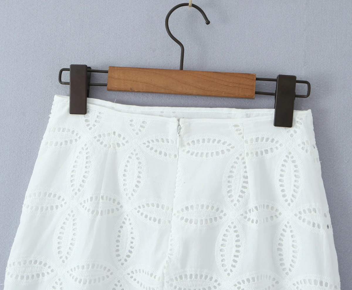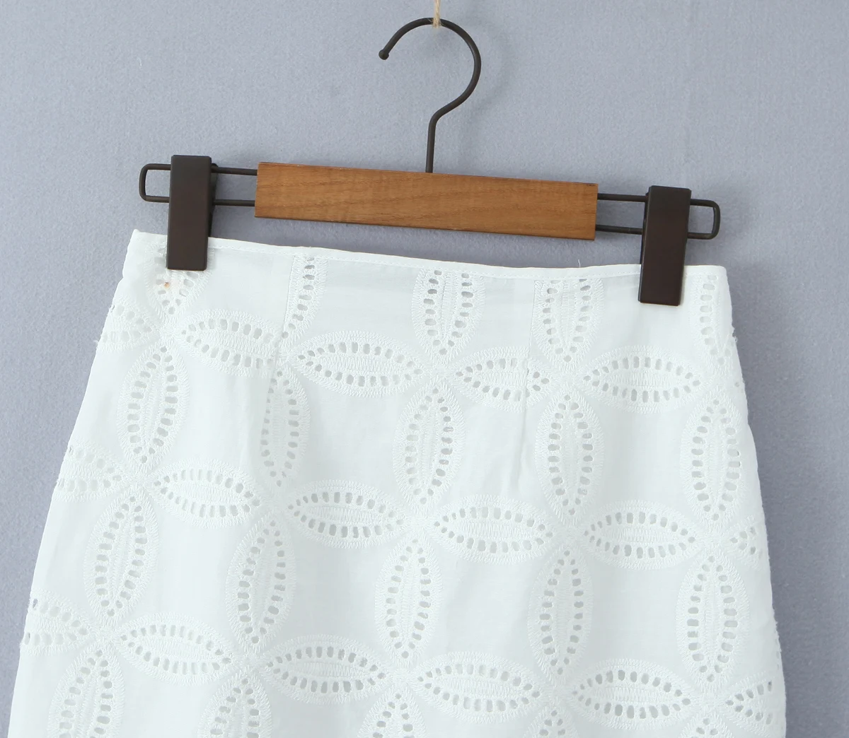 Yeknu European And American Style Summer Women's Suit White Short-sleeved Shirt + Lace Skirt Embroidery 2-piece Set Skirt