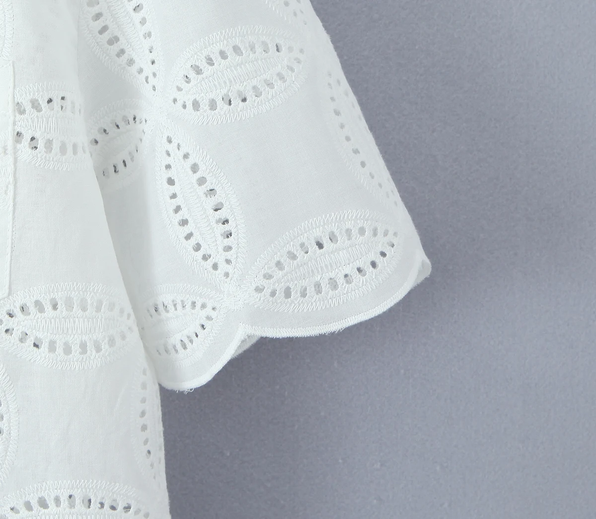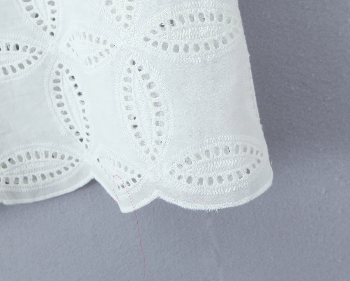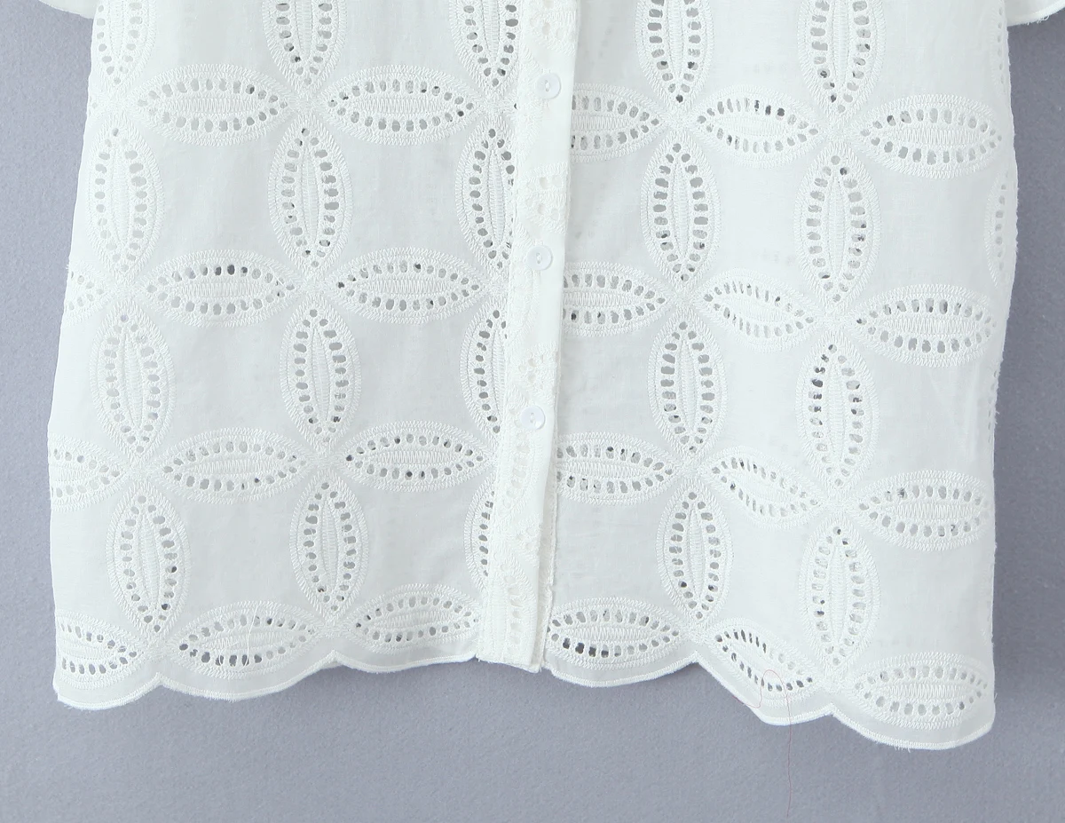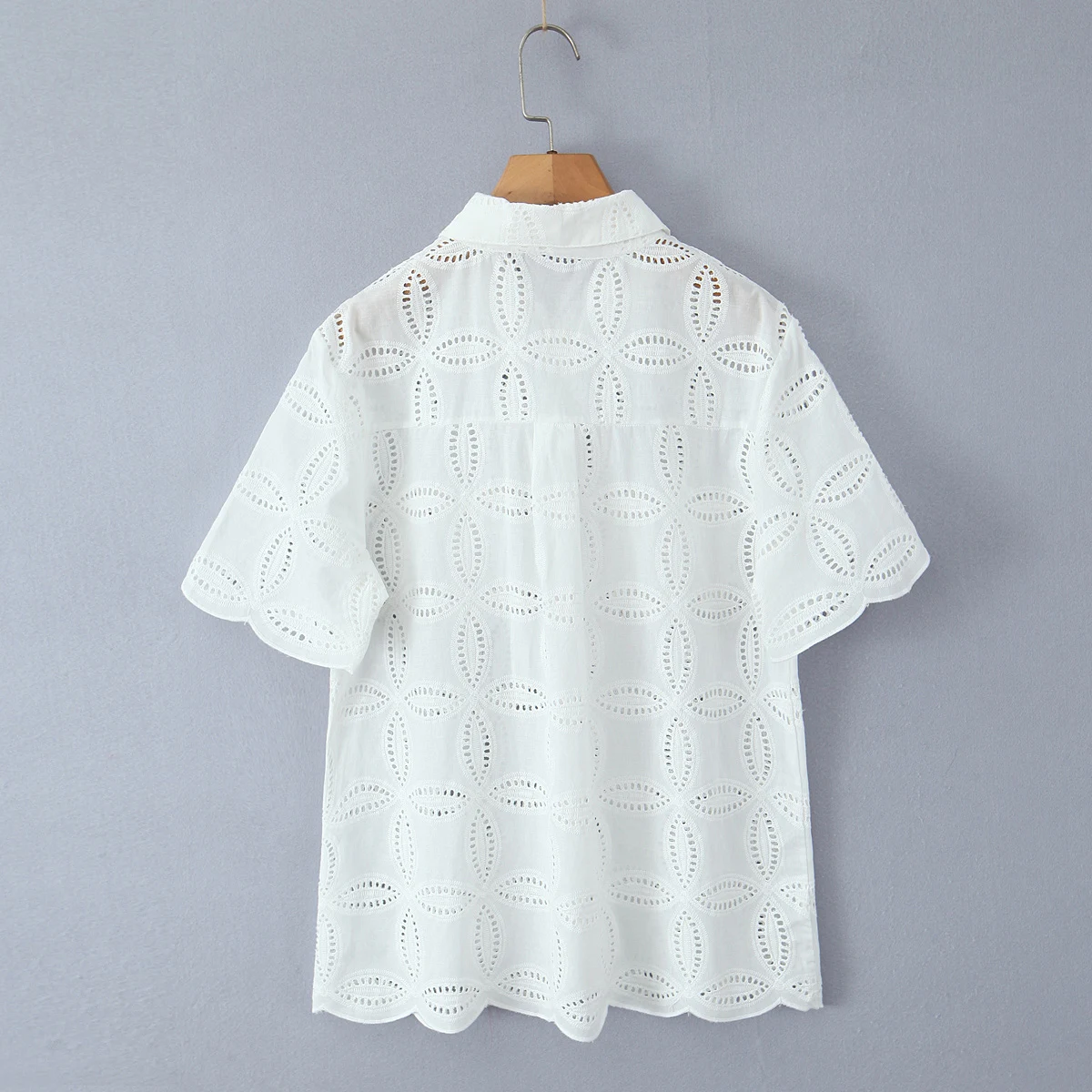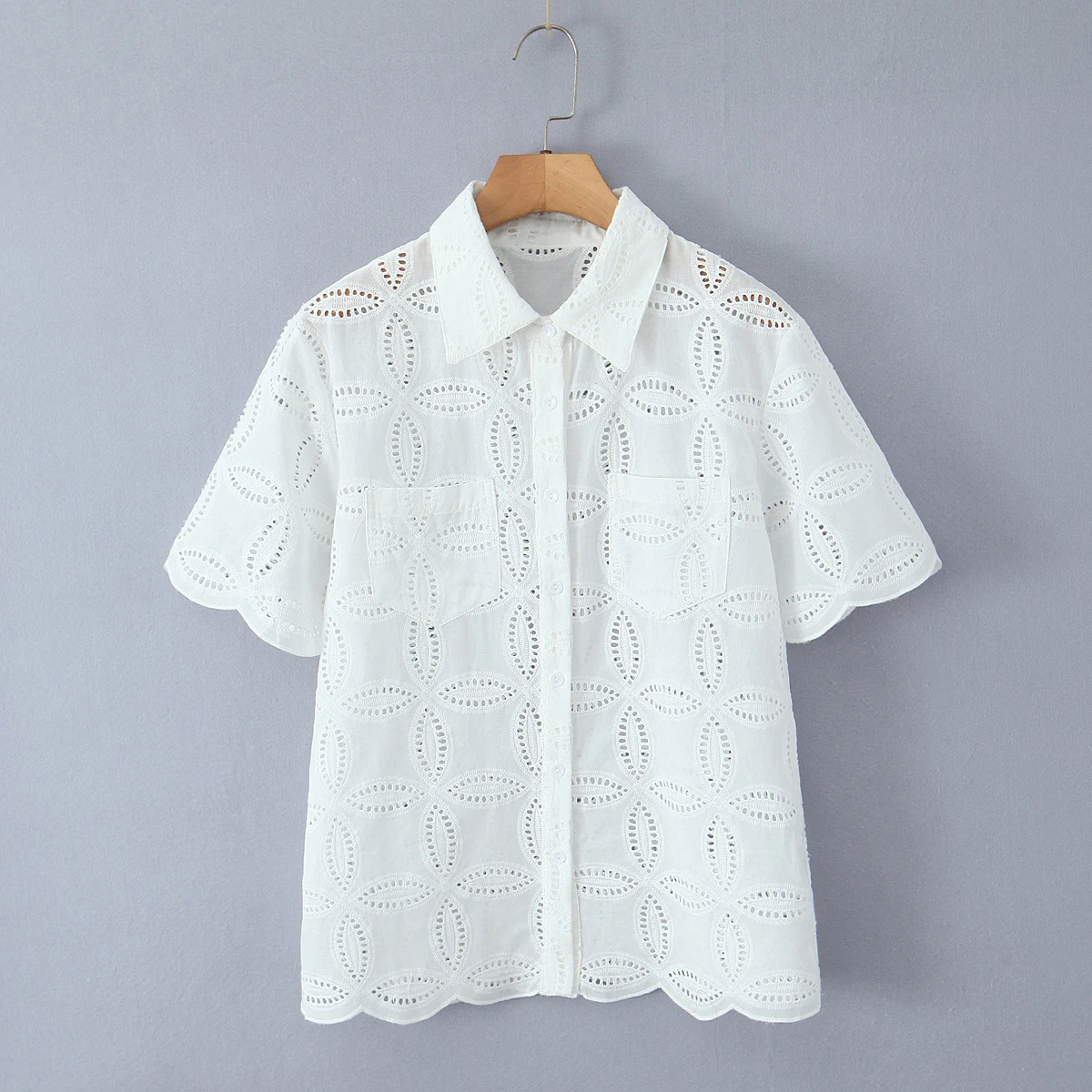 Yeknu European And American Style Summer Women's Suit White Short-sleeved Shirt + Lace Skirt Embroidery 2-piece Set Skirt