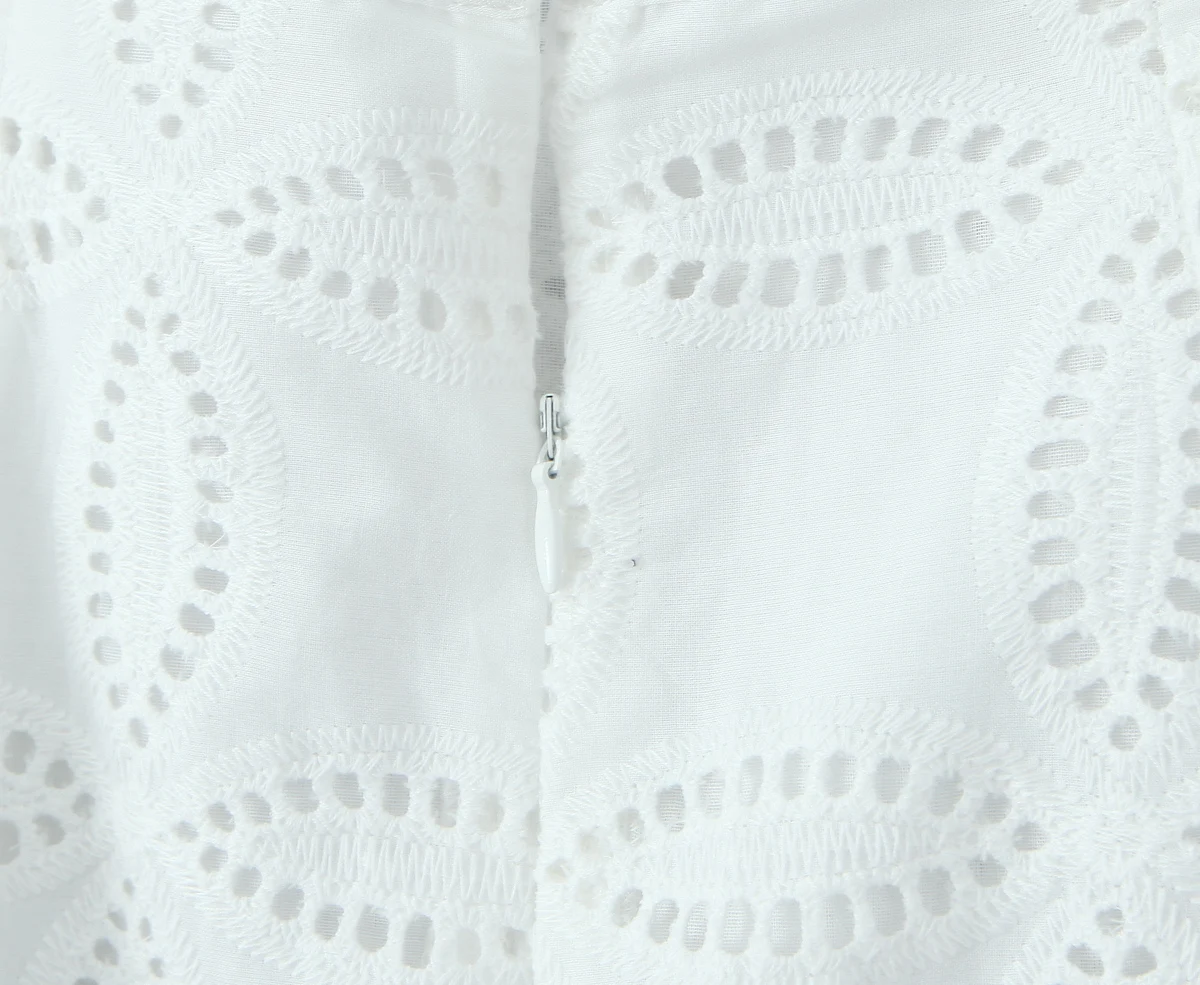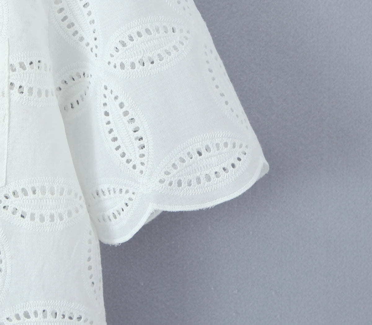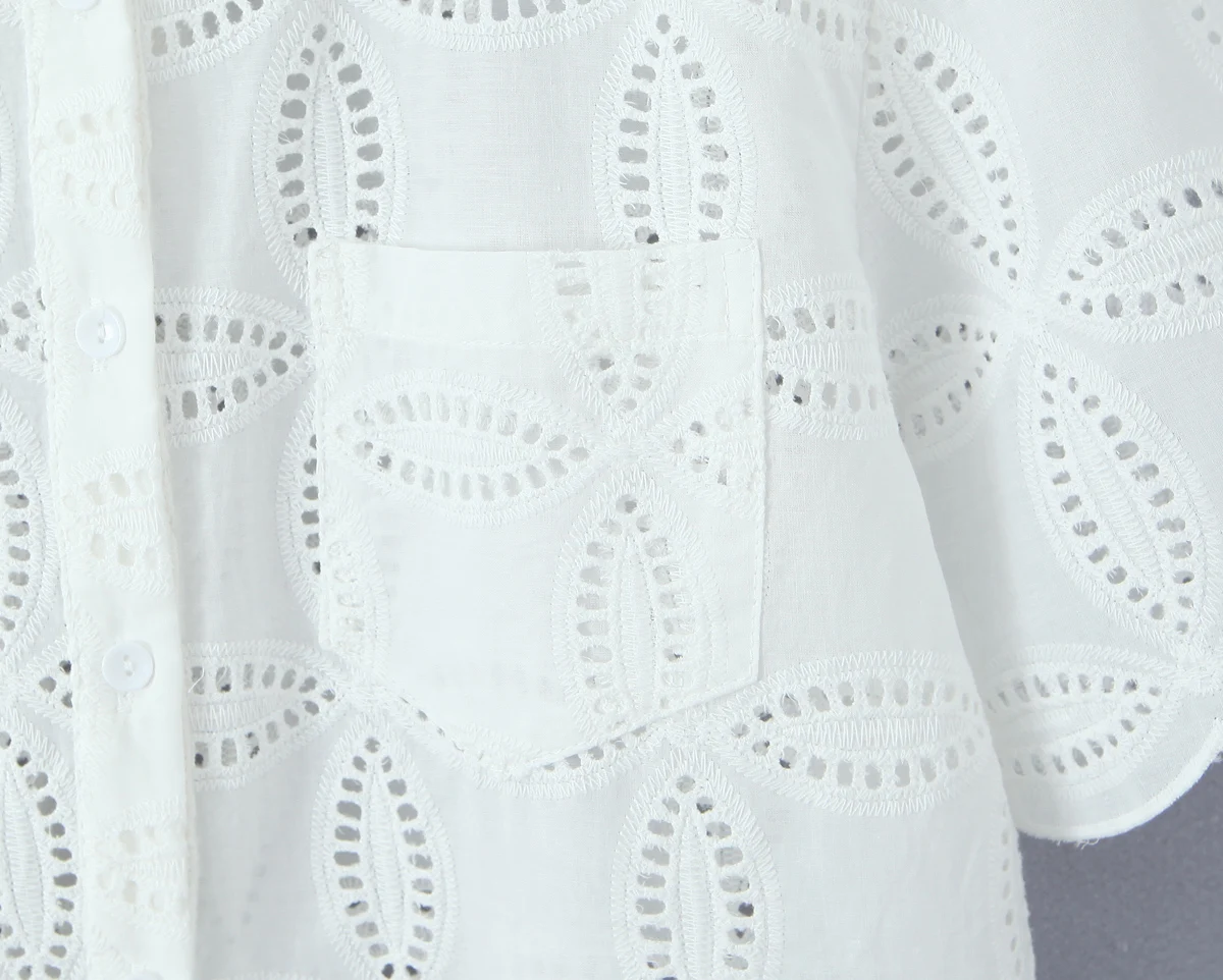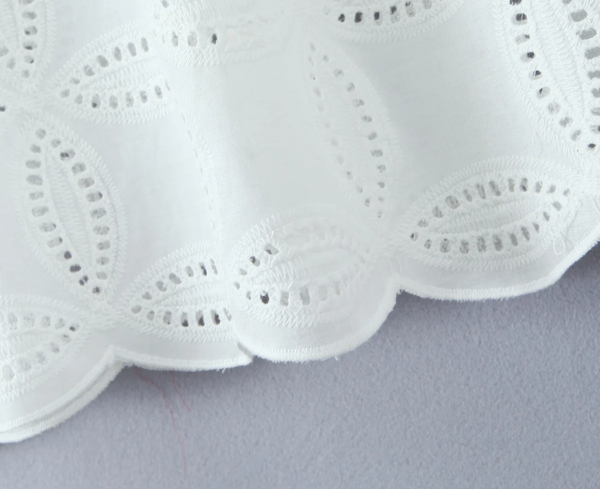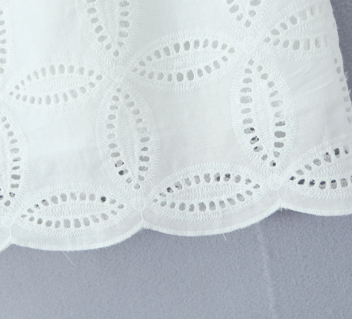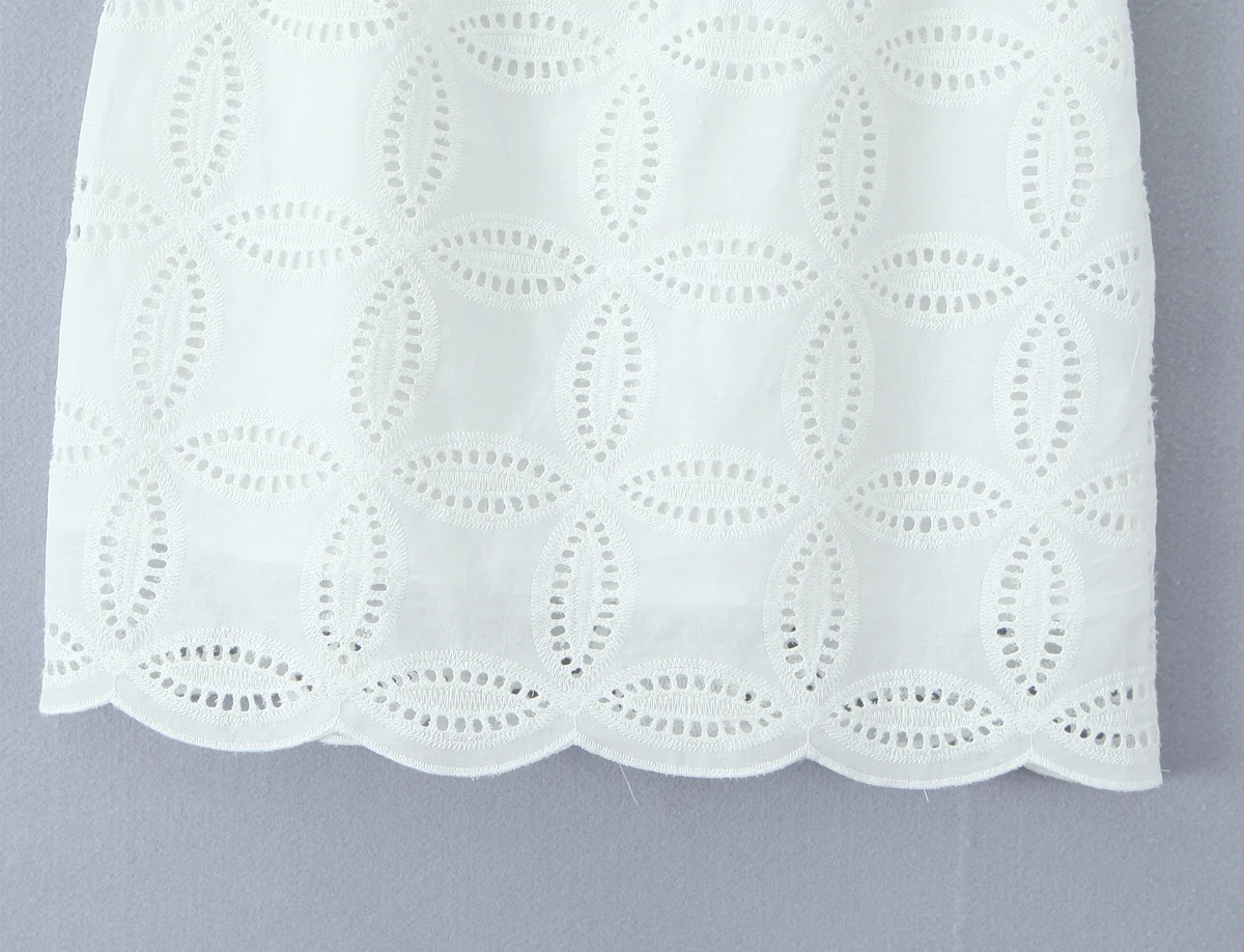 Yeknu European And American Style Summer Women's Suit White Short-sleeved Shirt + Lace Skirt Embroidery 2-piece Set Skirt