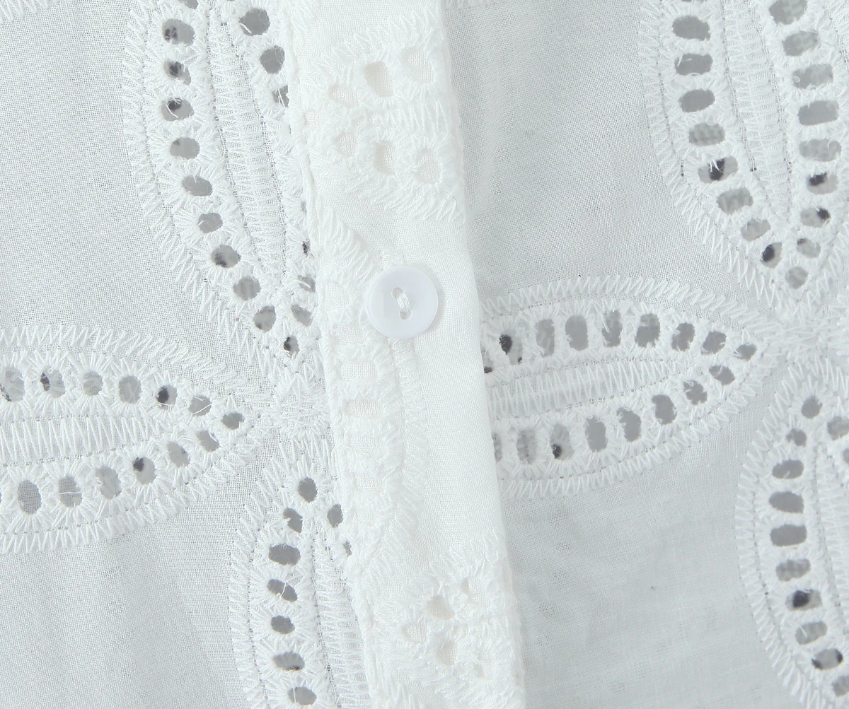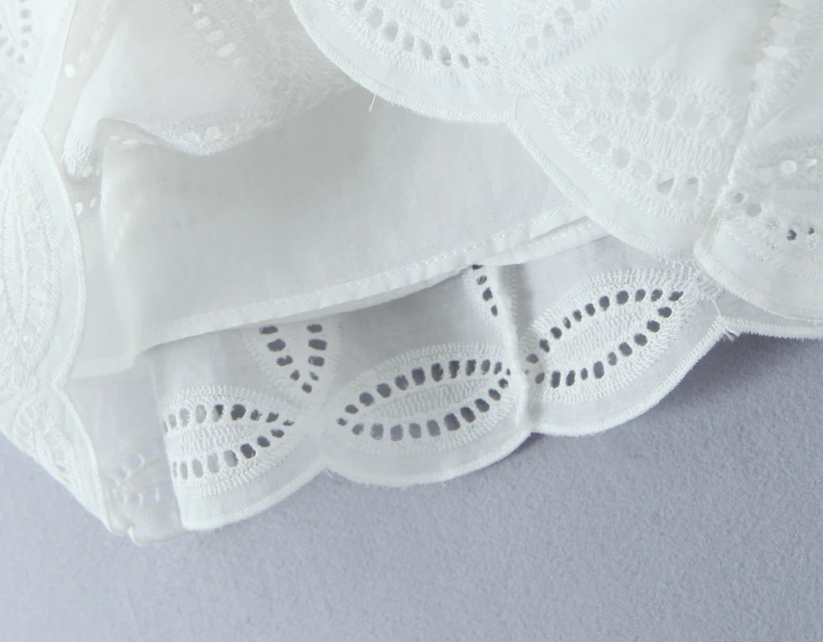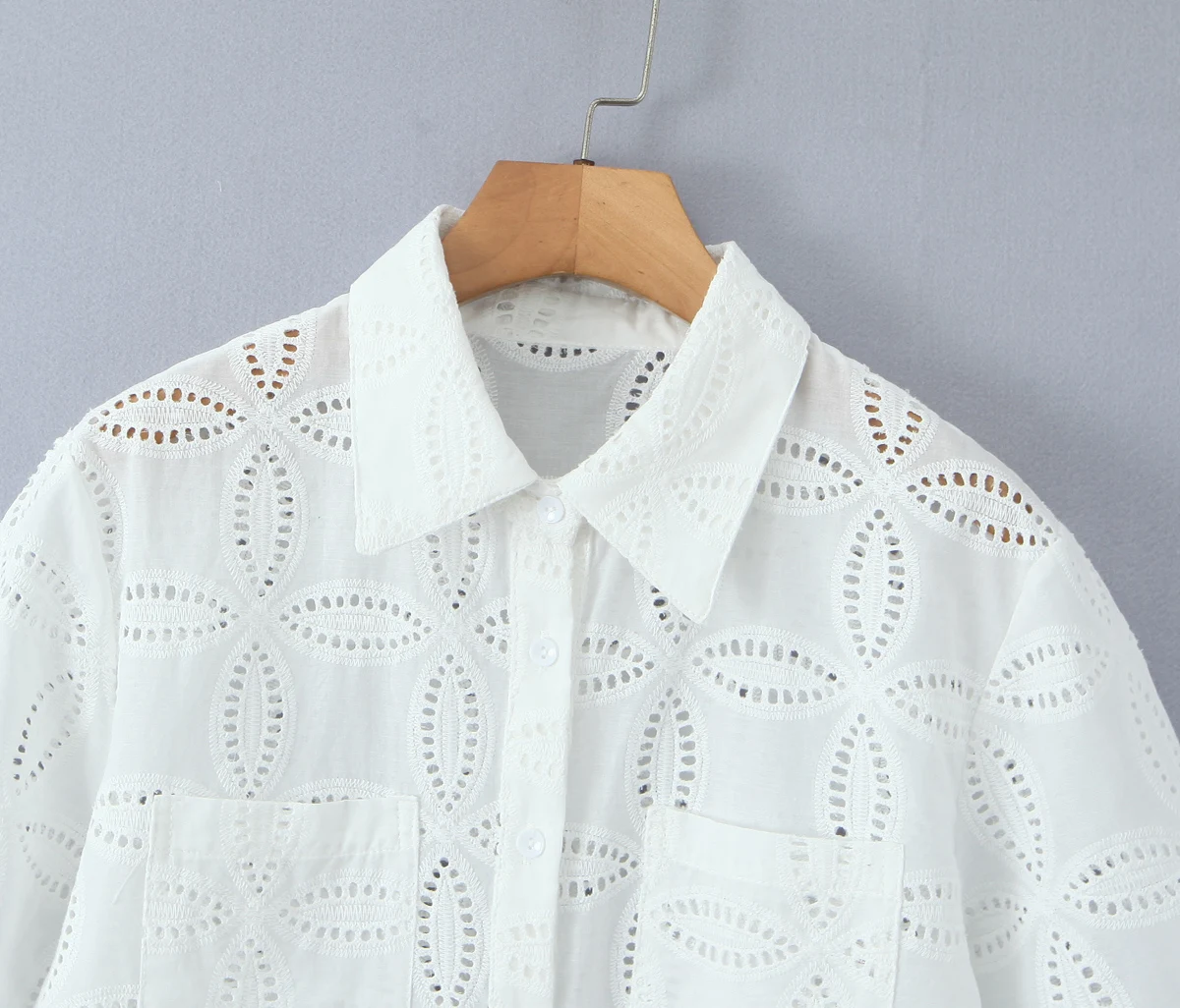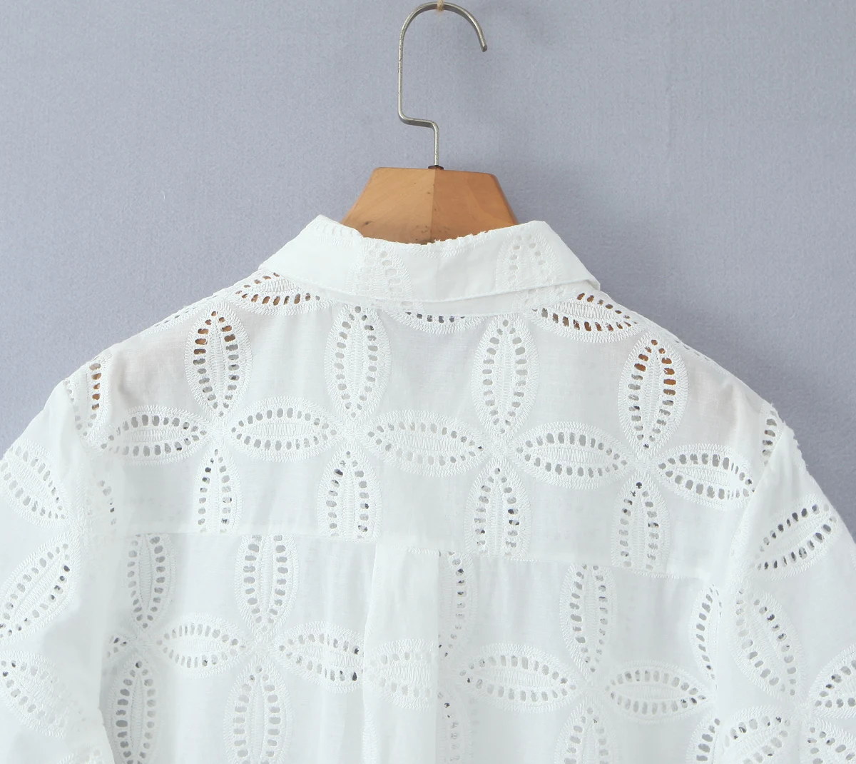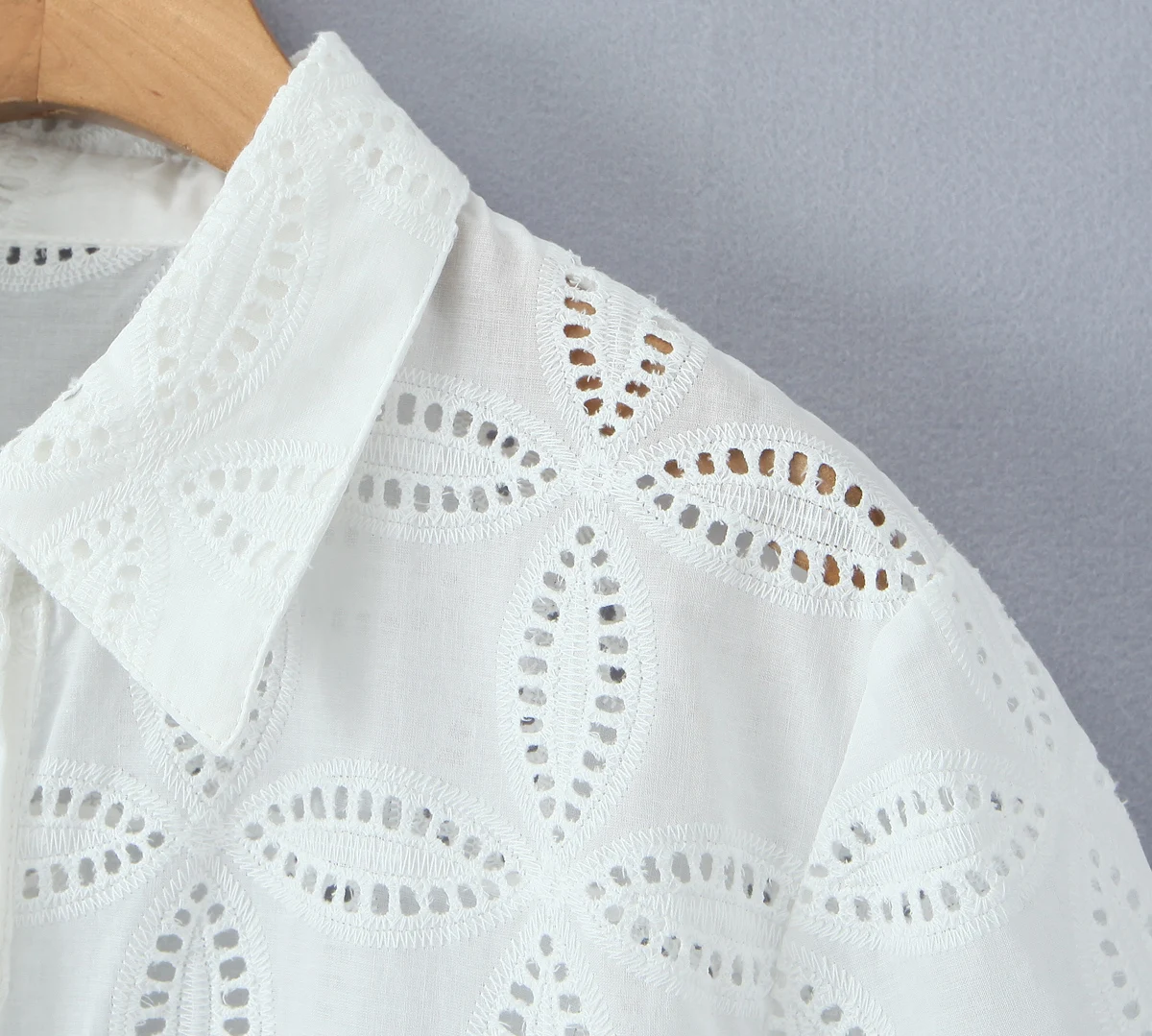 Yeknu European And American Style Summer Women's Suit White Short-sleeved Shirt + Lace Skirt Embroidery 2-piece Set Skirt