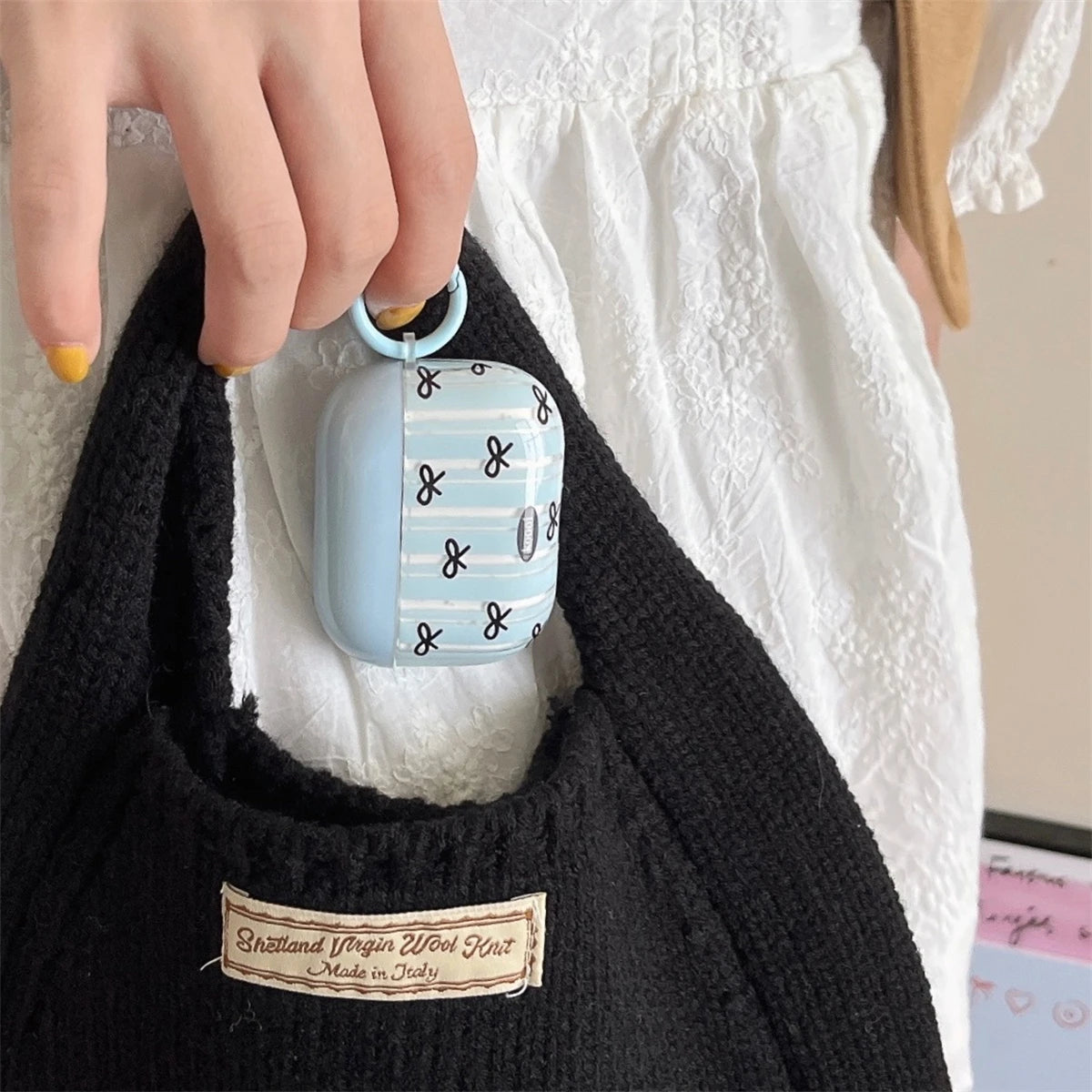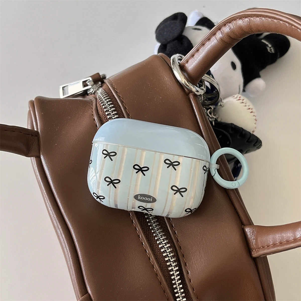 Yeknu Korean Ins Striped Bow Suitable For Apple AirPods Pro 1, 2, 3 Headphone Case Protective Case