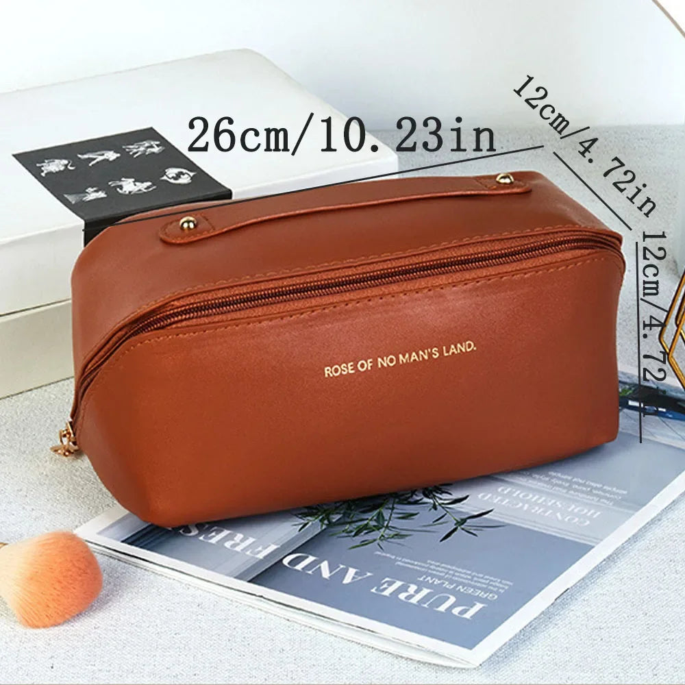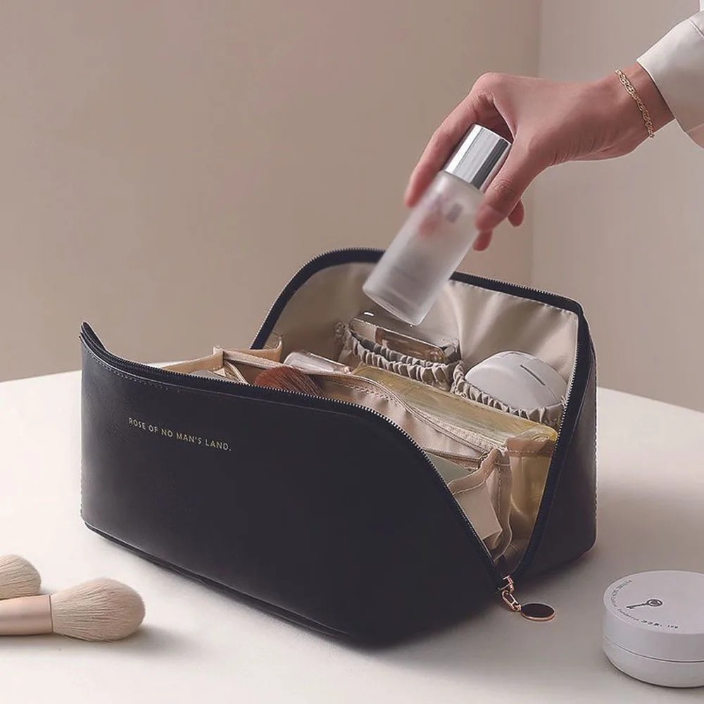 Yeknu Large capacity travel cosmetic bag, waterproof cosmetic storage bag, with partition, handle, flat opening, suitable for travel