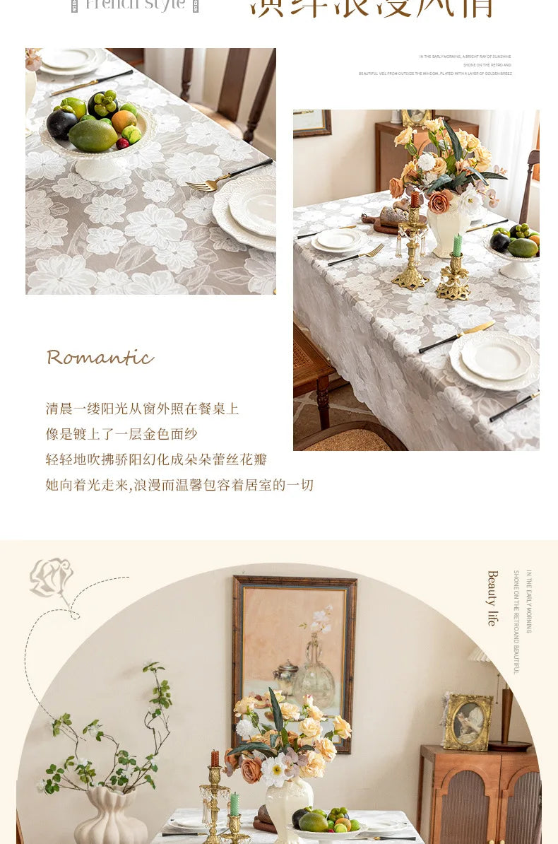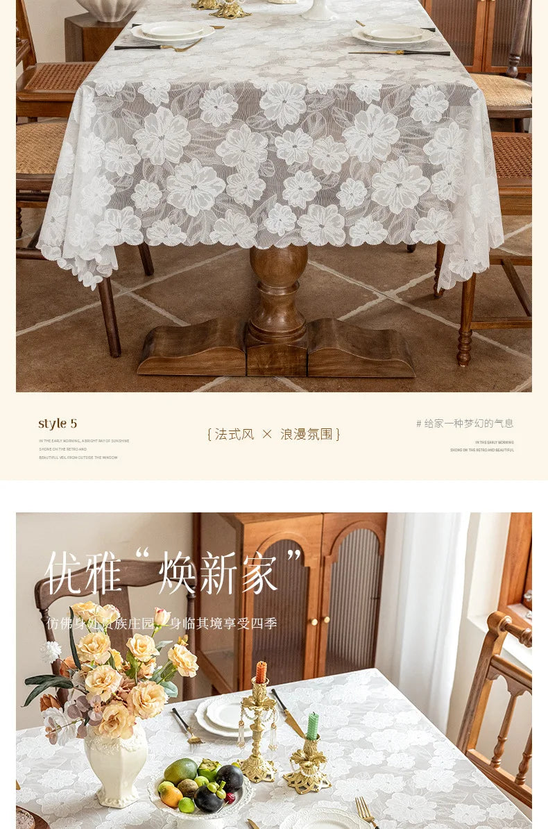 Yeknu 2025 new lace tablecloth modern simple hollow jacquard table cover atmosphere dessert table coffee table