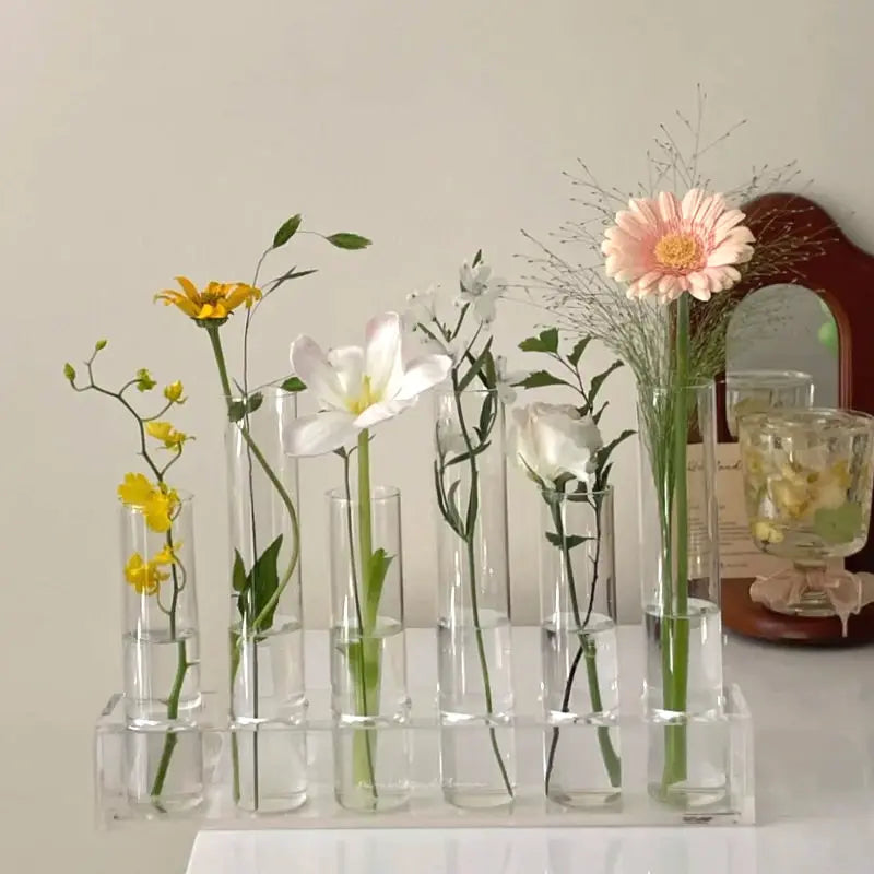 Yeknu Test Tube Vase Small Ornament, Glass Flower Rack, Light Luxury High-end Flower Hydroponic Flower Arrangement Test Tube Vase