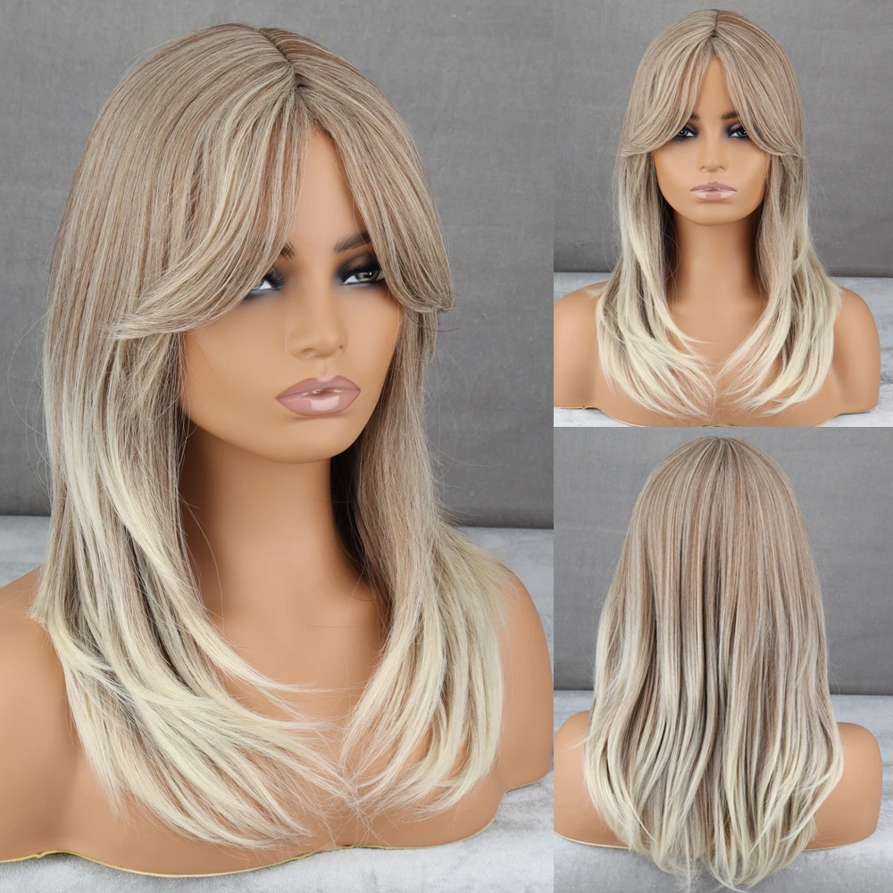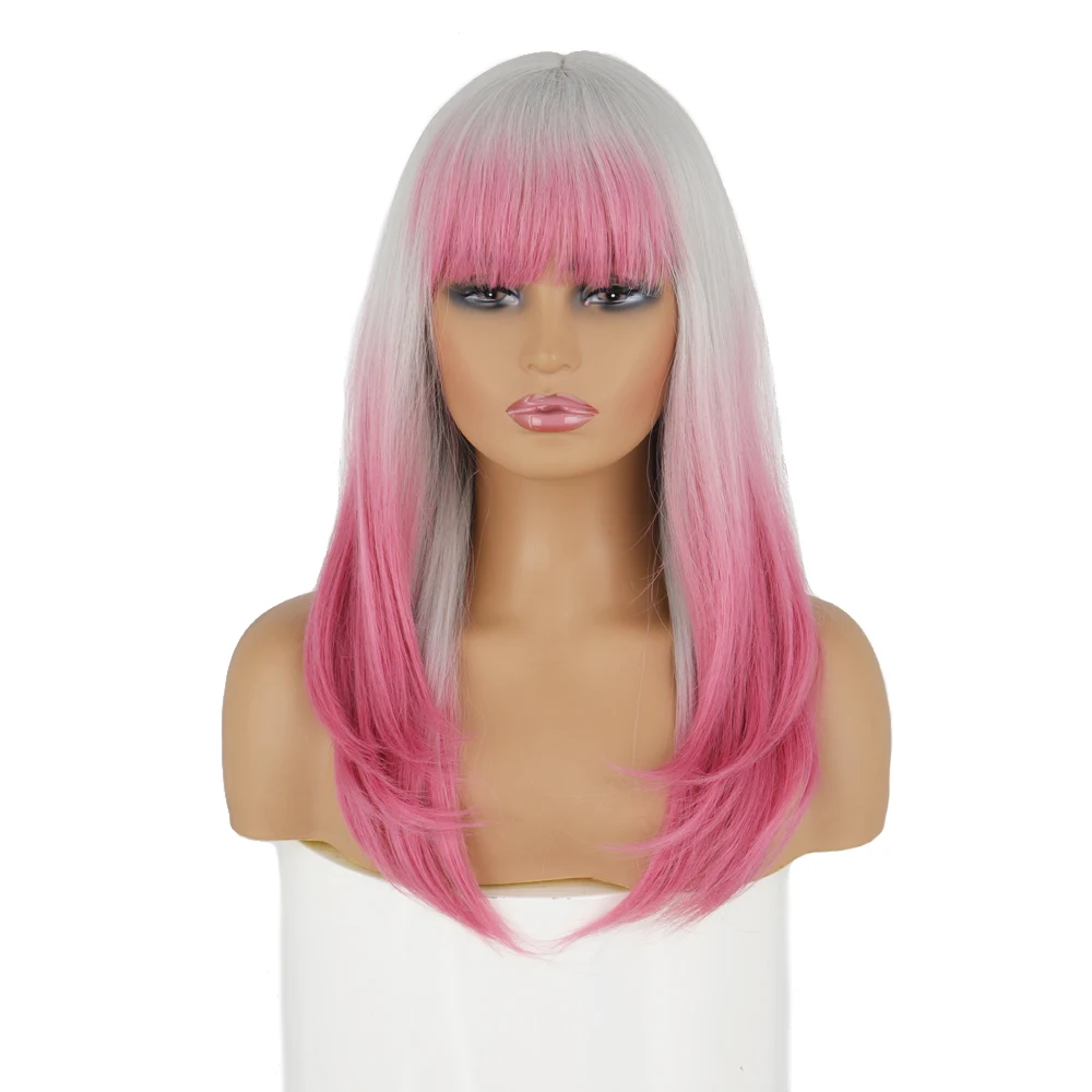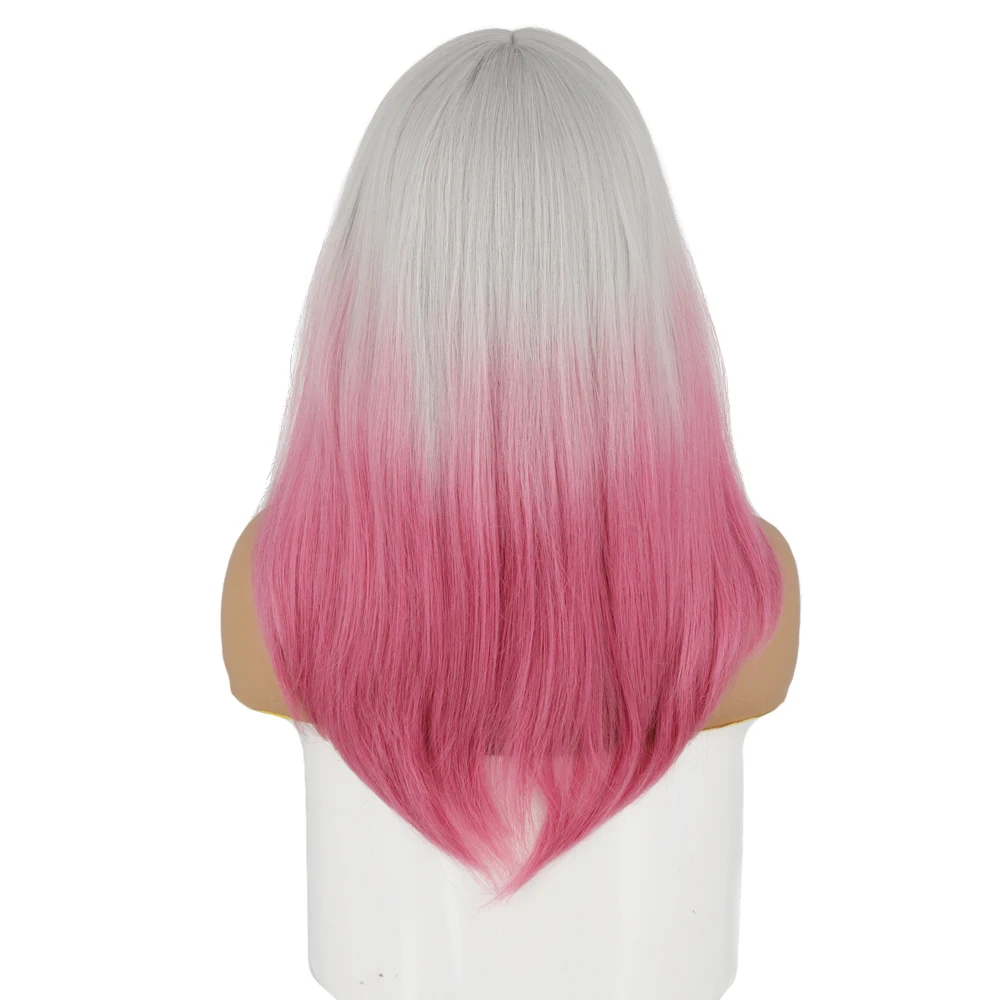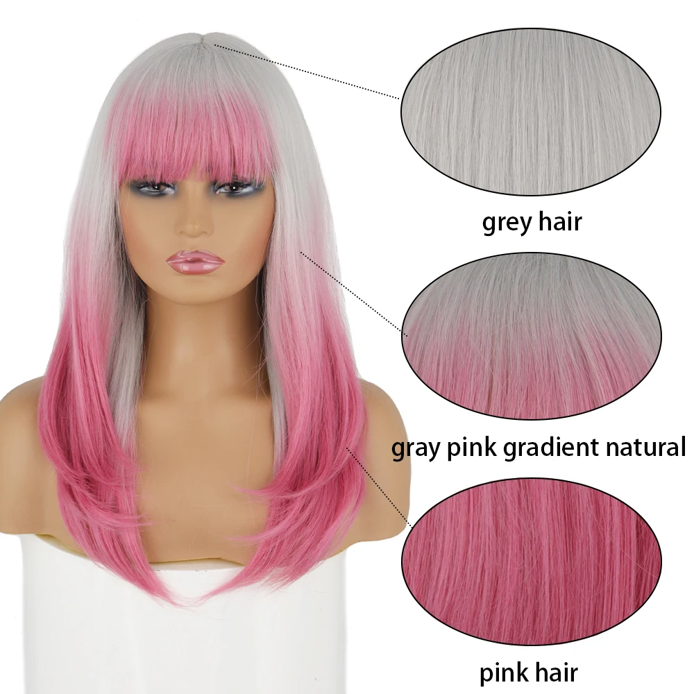 Yeknu Pink Gray With Bangs Long High Temperature Resistant Chemical Fiber Wig Lolita Fashion Party Wig