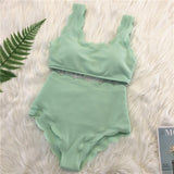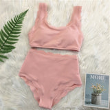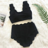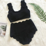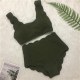Yeknu New Women Swimsuit Scalloped High Waist Bikini Set Solid Two Pieces Plus Size Swimwear Biquini Tankini