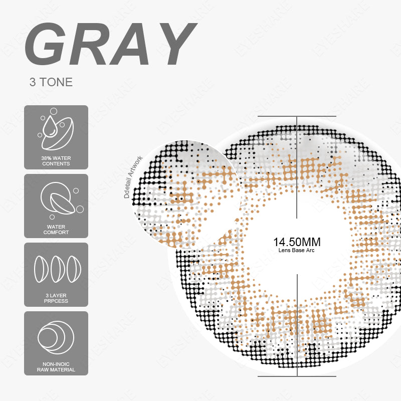 Yeknu 3TONE Gray 14.5mm 1 Pair