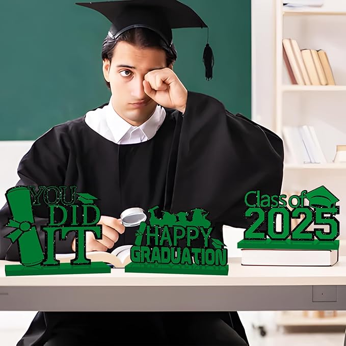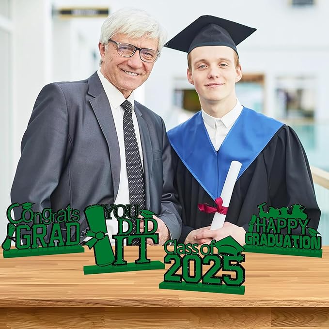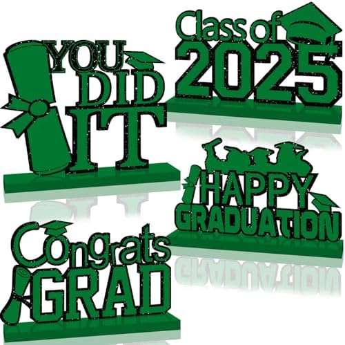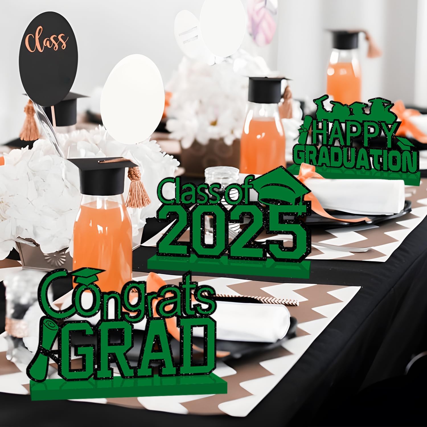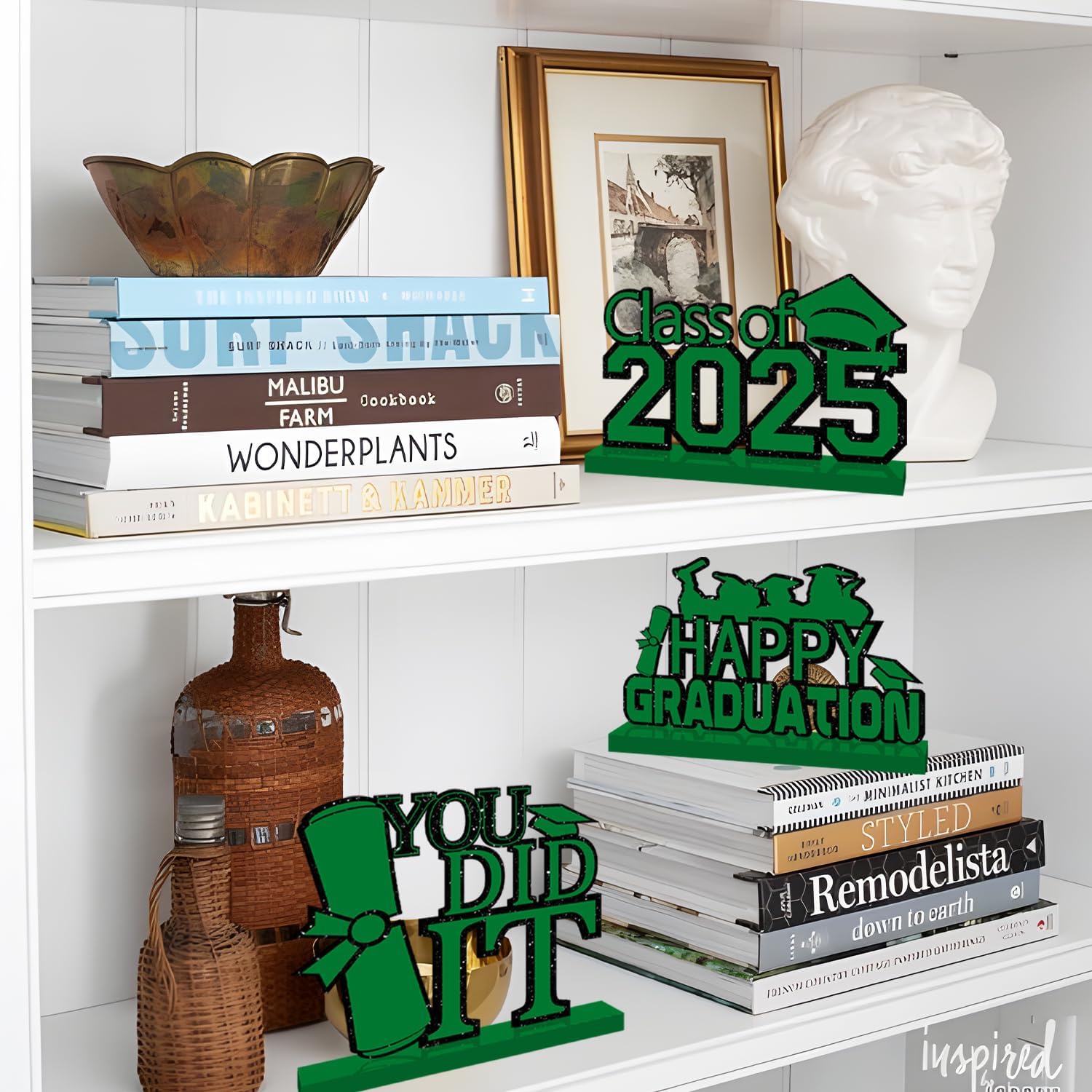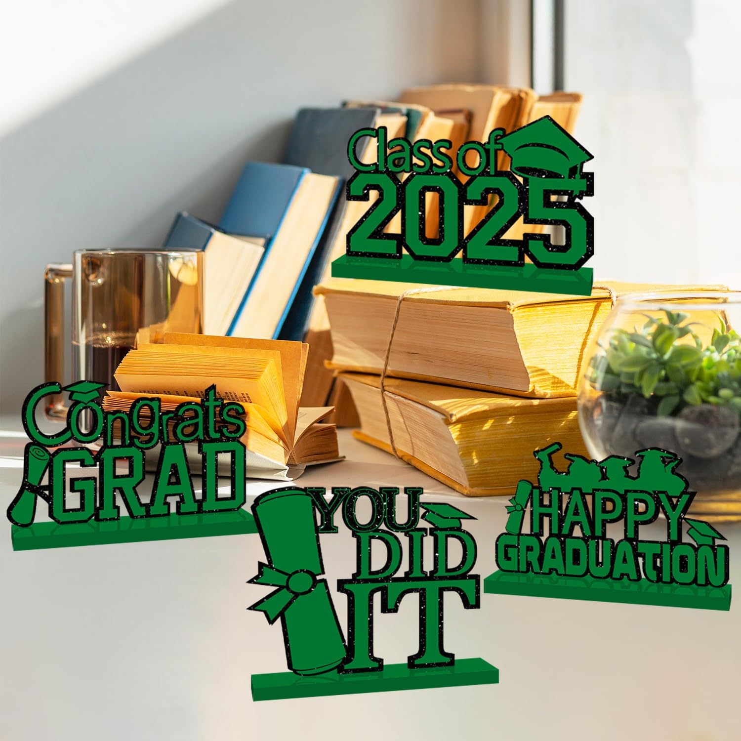 4Pcs Black and Gold Graduation Decorations Class of 2025 Congrats Grad Wooden Table Centerpieces Grad Table Toppers Congratulate Tiered Tray Decor for 2025 Graduation Decorations